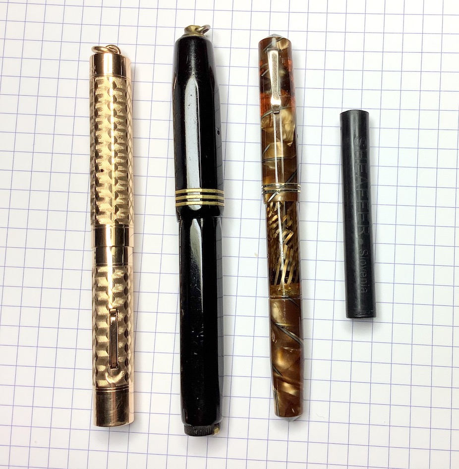partendo da sinistra: Wahl All-Metal Pen, Aurora Novum, Eversharp Bantam, vecchia cartuccia Sheaffer