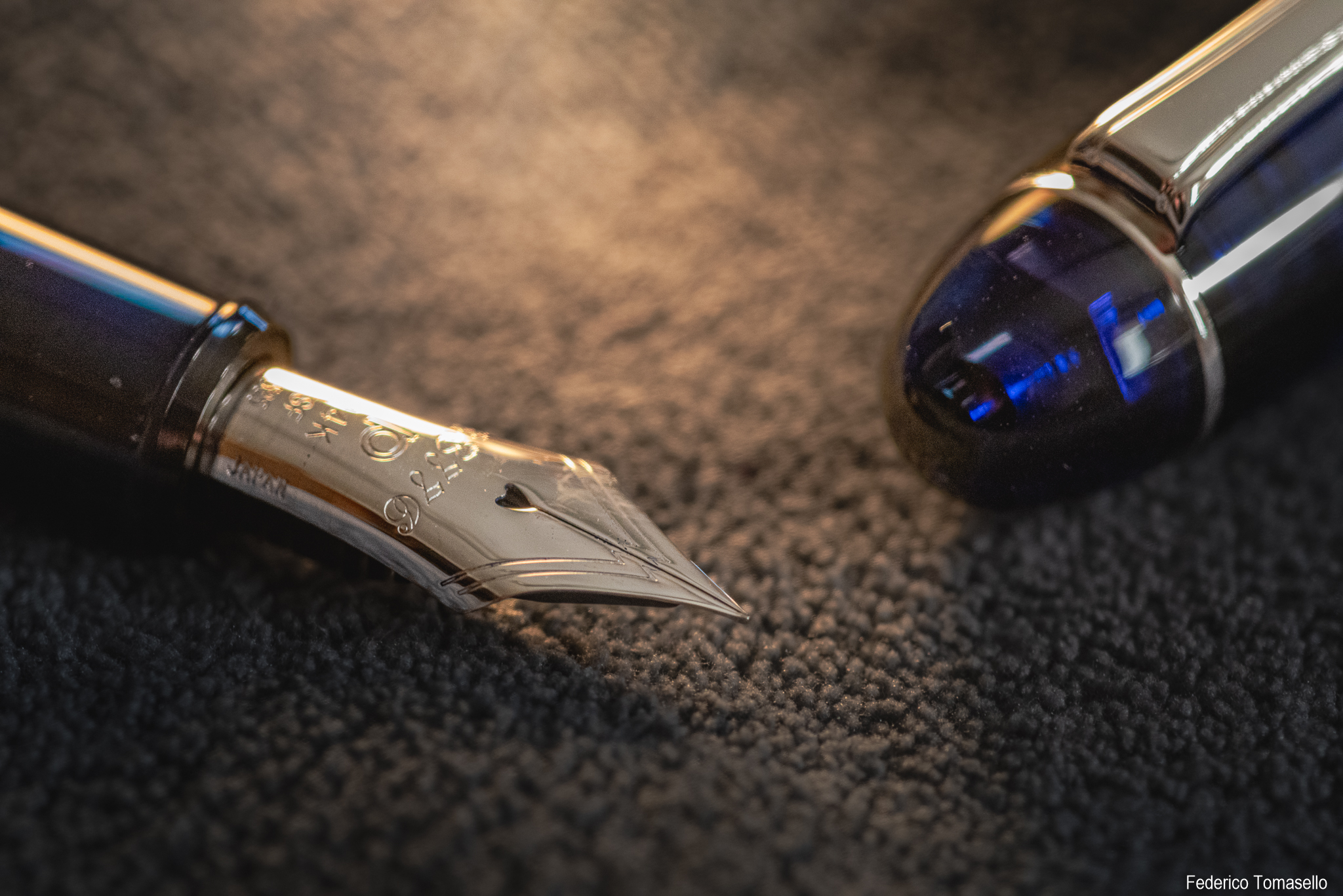 Finalmente posso dire che ho trovato una penna "costosa" che vale quello che costa, anche se in maniera schizofrenica: la penna in sé infatti è più o meno ignobile, con una costruzione dozzinale e industriale che non va oltre le penne cinesi da meno di 5€. Tra l'altro è piccola, leggera e anche abbastanza scomoda per le miei mani; il pennino invece è invece più o meno superlativo, mi accompagna perfettamente in qualsiasi modo io scelga di scrivere, con qualsiasi inchiostro l'abbia provata (da quello da 1€ per 30ml al "suo" Iroshizuku). Scrive bene in velocità, per appunti e scarabocchi, scrive bene con più lentezza e precisione. Scrive bene sempre.