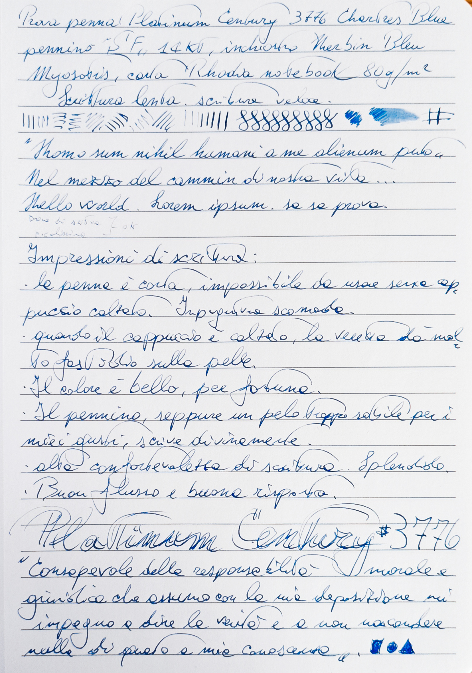 Certo la scrittura non è per nulla piacevole quanto l'SF e l'SFM di Platinum e Pilot: sto MF è troppo sottile per i miei gusti, è tosto come il granito, asciutto come il deserto del Gobi e pieno di attrito come il petto di pollo a metà esofago.