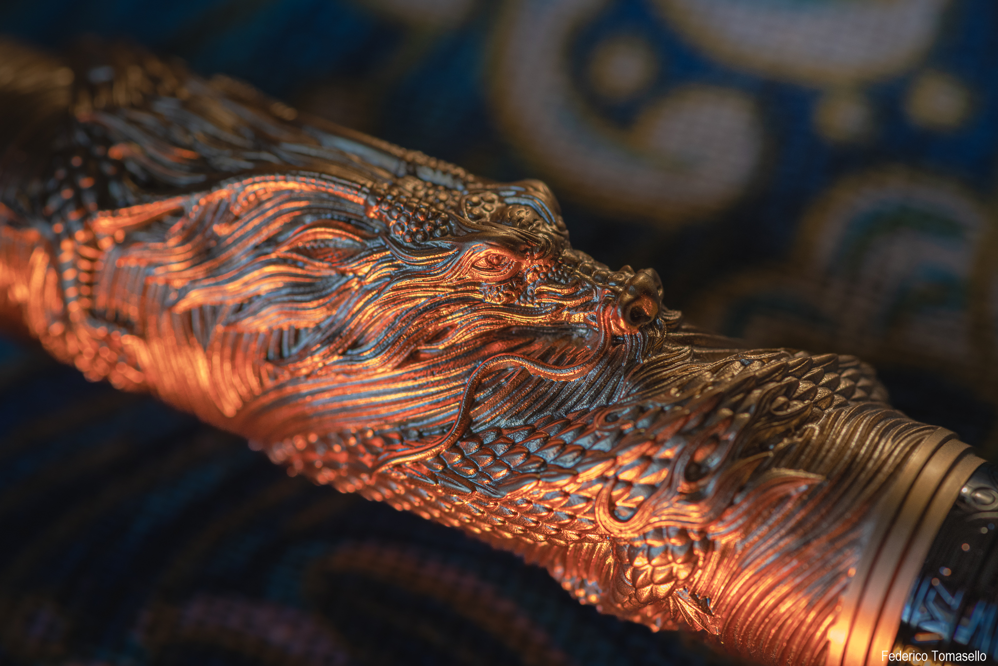 Il 2024, cioè l'anno del dragone, l'ho concluso così: convincendomi a comprare questa penna che pure mi sembrava orribilmente kitsch e ben poco attraente. Ma sull'altro piatto della bilancia c'era la N23 "Anno del Coniglio" che chiedeva insistentemente "CONTINUA LA SERIE, CONTINUA LA SERIE!!! NON TI FERMARE!" e quindi alla fine, complici i soliti sconti carpiati ritornati, l'ho ordinata. In attesa che esca fuori la N25 dell'anno del serpente.