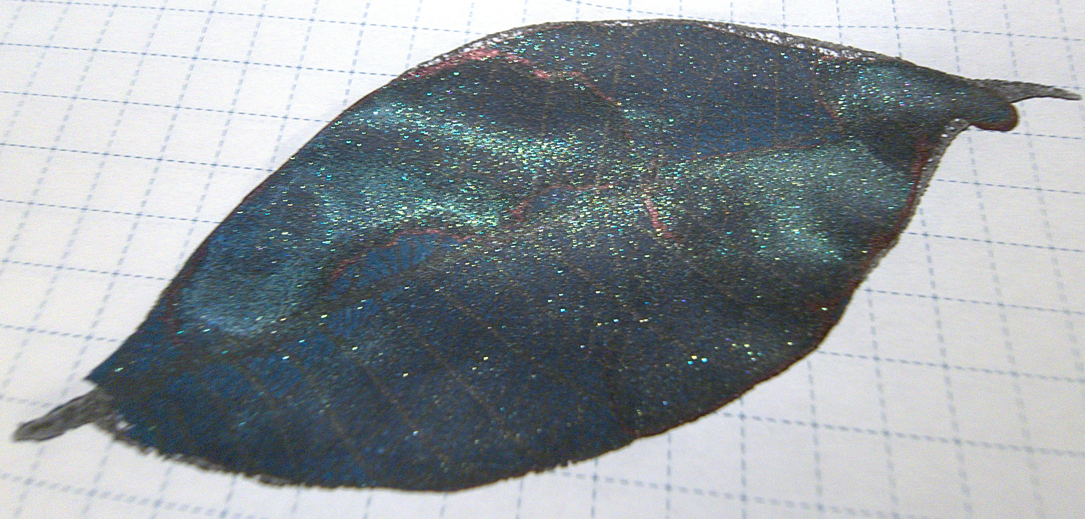 Nelle aree di accumulo, sia usato a pennello che nello scritto, con le carte giuste può presentare un poco di sheen rosso scuro caldo, quasi bronzeo.
