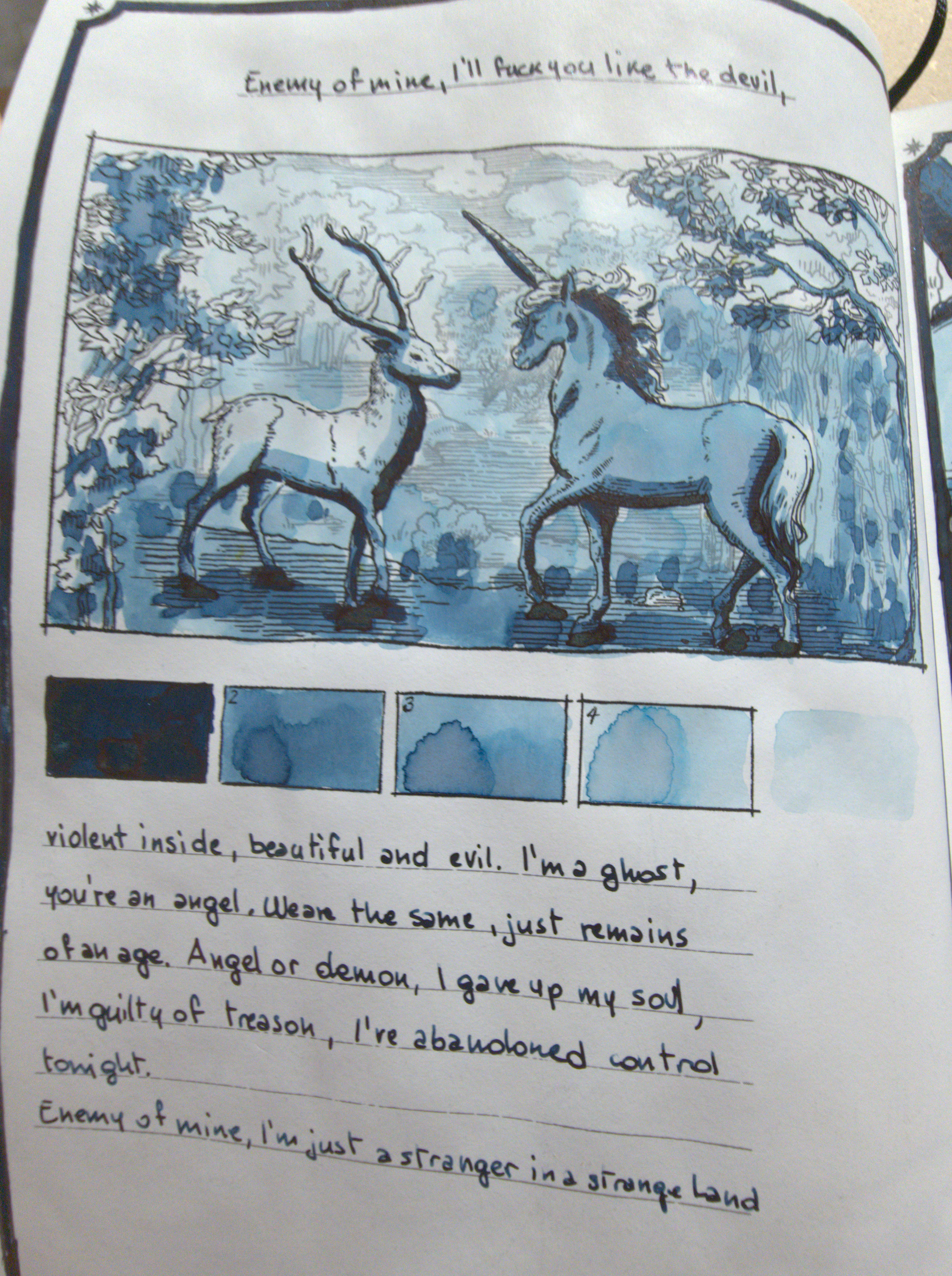 Sotto inserisco un paio di pagine del Log of Elixir di Dominant Industry colorate con questo inchiostro