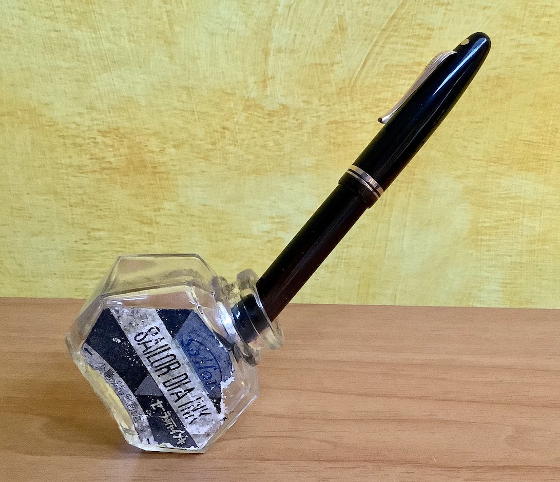 Il calamaio da 1 oncia non è grande, ma rimane comunque in equilibrio anche con una penna dentro (la stilografica è questa)