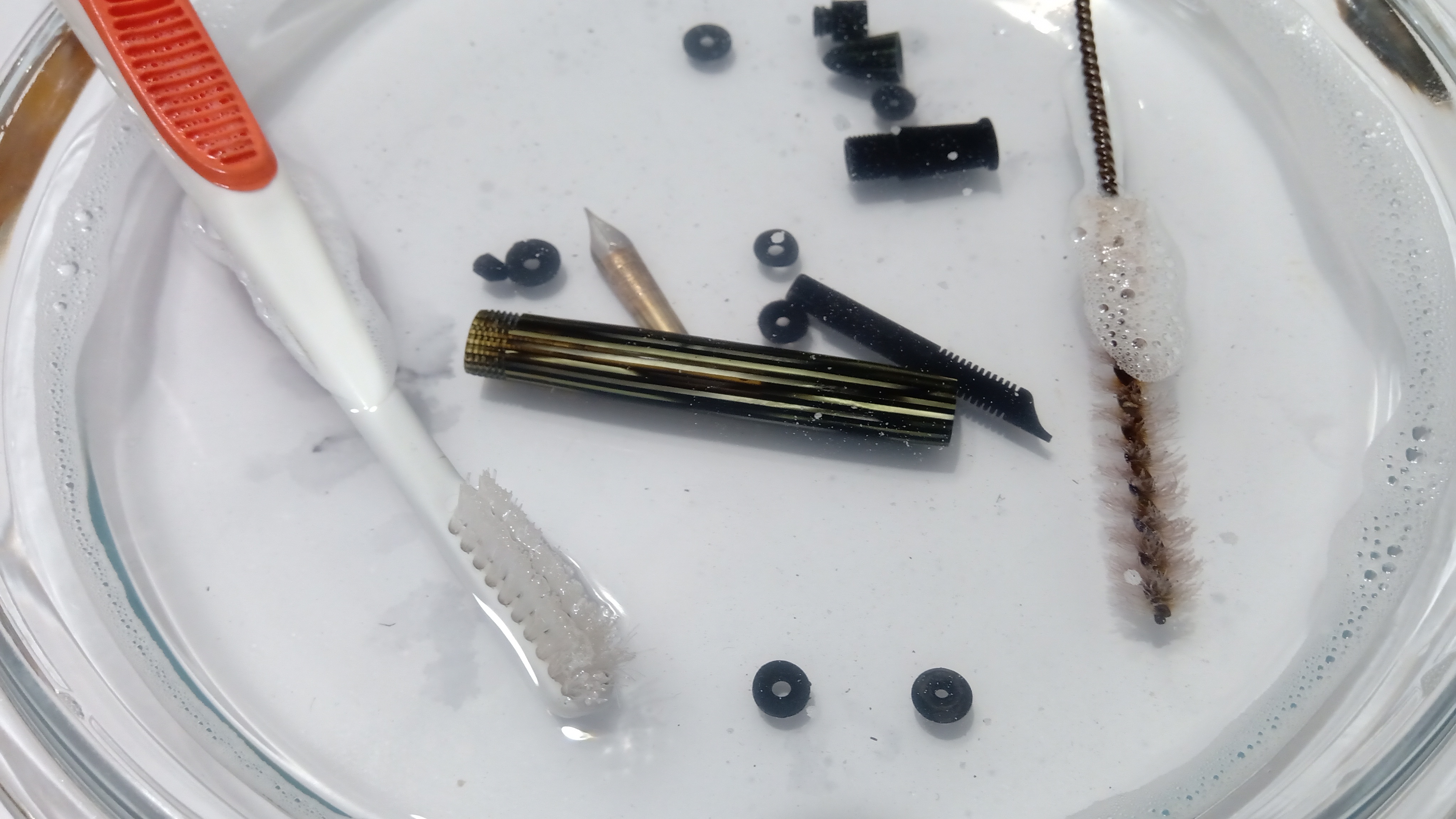 Primeramente, una limpieza interna del capuchón con WD40. No me pareció lógico seguir castigando los dorados con más agua y detergente...