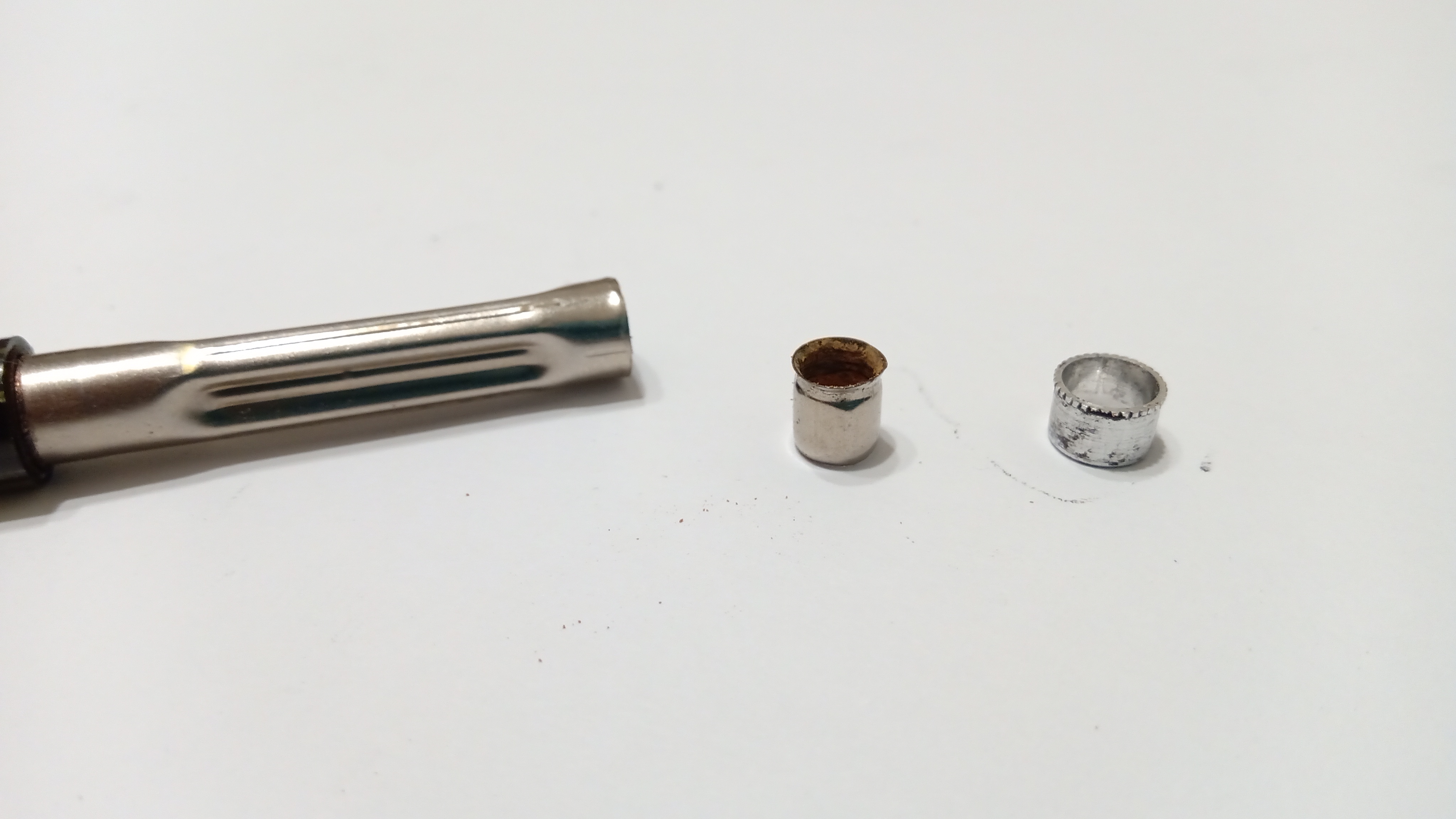 Insertamos a continuación en el extremo posterior de la camisa de latón la copa donde asentará la cápsula con la goma de borrar...
