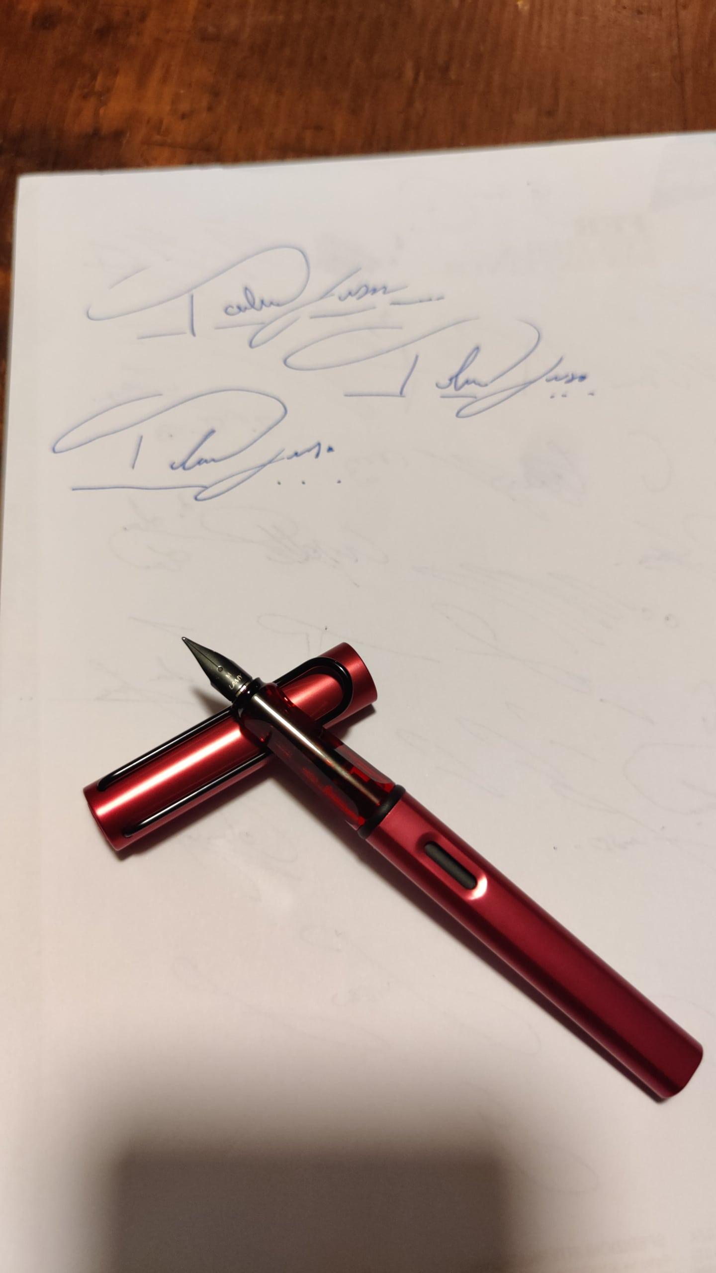 Haha grazie.. La Lamy me la immaginavo più piccola onestamente, vedremo come va.. Tra l'altro, il corriere ha maltrattato talmente tanto il pacco che entrambe le confezioni, del calamaio e della penna erano distrutte.. E la penna stessa ha un shade diverso da quello che pareva in foto.. Ma pasiensa, ora ho trovato della carta da lettera e fra poco provo a vedere quanto faccio pena 🤣. E magari nei prox giorni provo a capire un po' dove andare a parare per imparare a scrivere decentemente e magari anche qualcosa di più (compresa la mia firma fatta come si deve) grazie ancora!