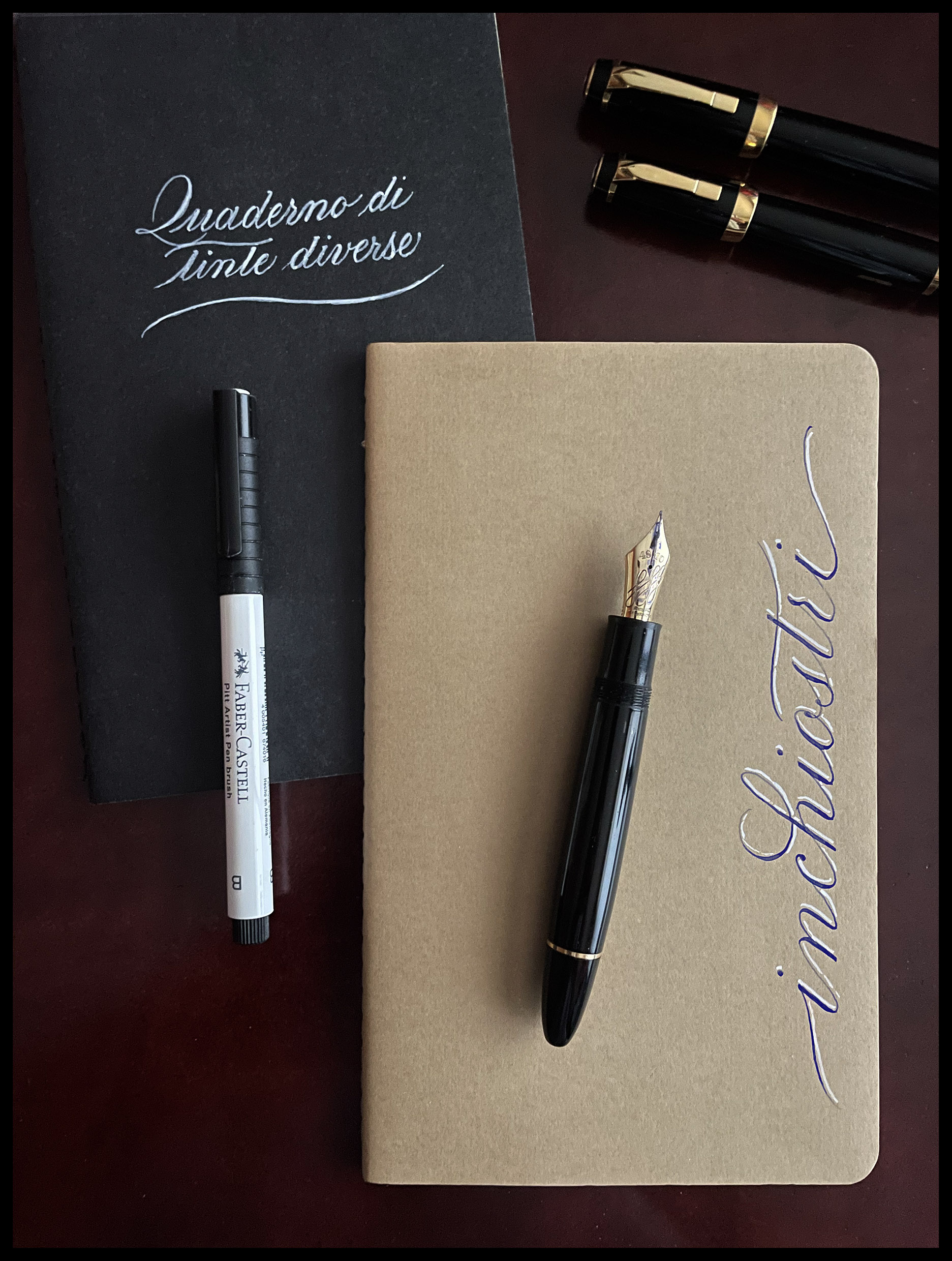 “Quaderno di tinte diverse” e “inchiostri” sono esattamente la stessa cosa, ma tutti i miei quaderni quadernini e quadernetti hanno un titolo proprio, come se fossero libri, nei quali i titoli non si ripetono (a meno che sia una trilogia…).