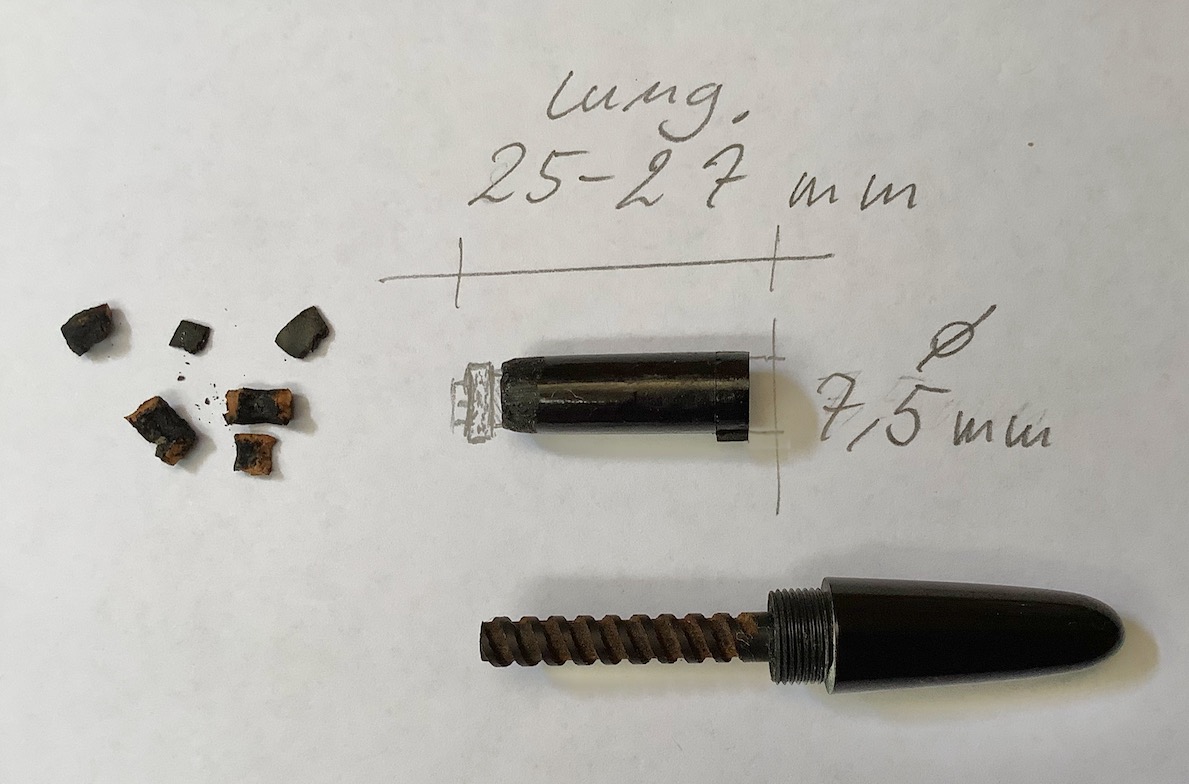 Peggio ancora il meccanismo dello stantuffo: ne rimane un pezzo rotto e non completo, la guarnizione in sughero libera dal suo alberino finito chissà dove (segno che qualcuno ha tentato una riparazione e poi ha rimesso i pezzi rimanenti all’interno del fusto). Poco male, si sapeva e si immaginava una situazione del genere.