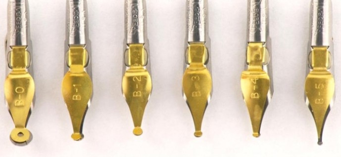 Questi son pennini con punta larga che per loro natura necessitano di larghe quantità di inchiostro. L'inchiostro stilografico viene trattenuto meglio nonostante sia più acquoso e possono essere usati molto bene
