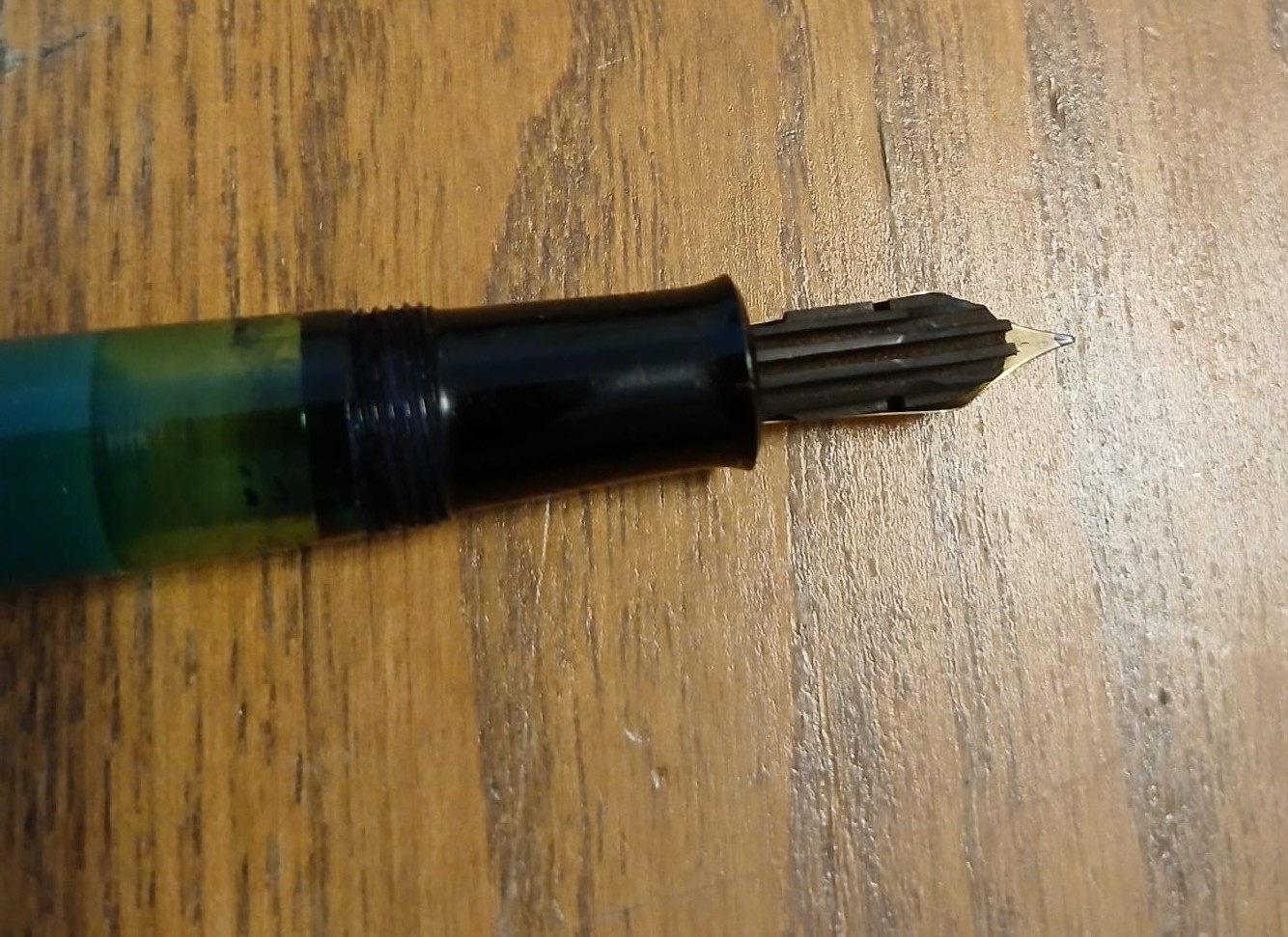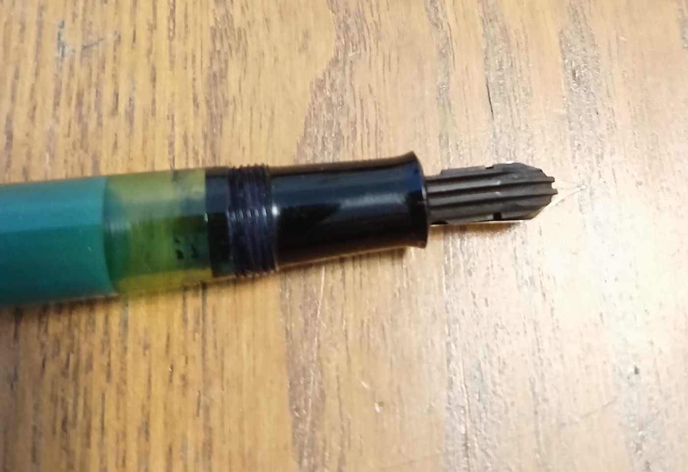 Mi hanno mandato le parti sostituite e la crepa era causata da un colletto tra il pennino e l'impugnatura: Probabilmente qualche sostituzione di pennino di decenni fa.