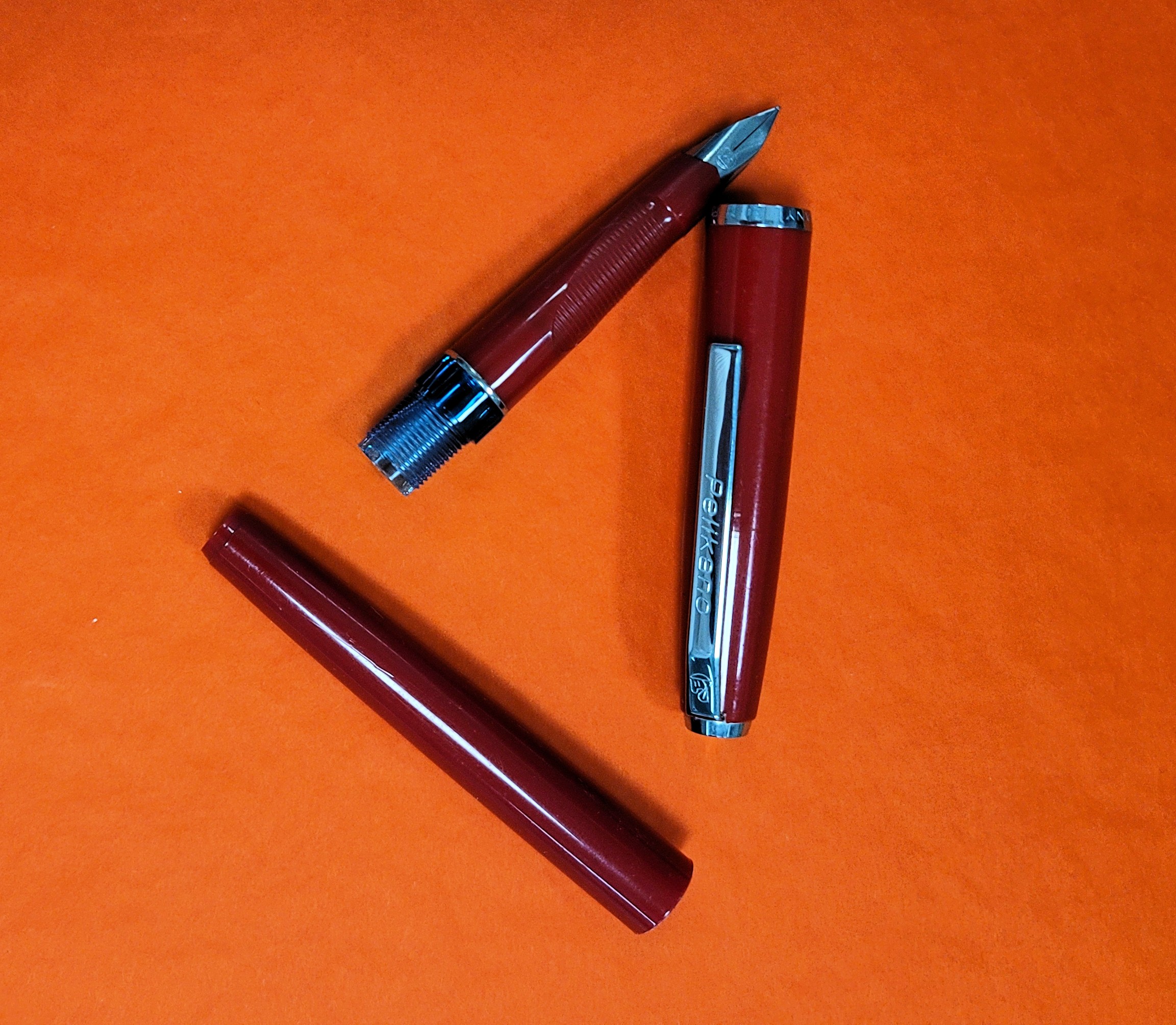 Beh, con il cappuccio crepato e il pennino ciancicato e parzialmente sollevato dall'alimentatore, la penna scriveva ancora egregiamente e non si seccava.