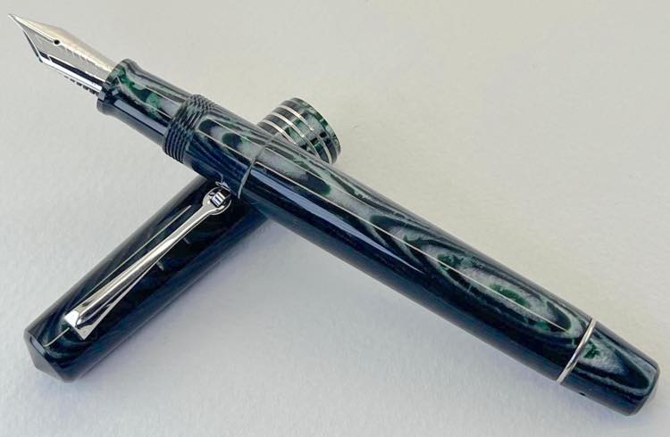 Risoluzione delle foto troppo bassa. Andando a memoria non ricordo Omas arco verdi tonde. Potrebbe essere una della classiche paragon arco '92 e successivi, senza la greca ma con 3 anellini. Le Paragon sono 14,2 cm circa, chiuse.