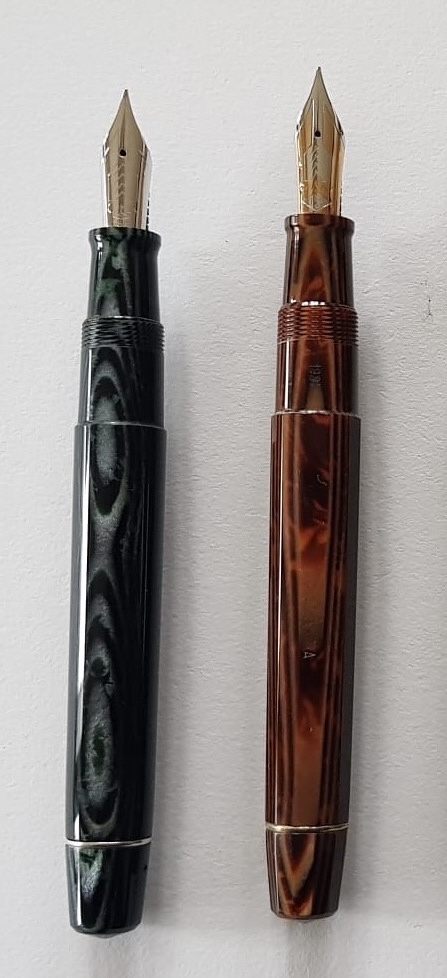 Niente da fare… ho avuto solo una foto accanto a una Paragon, da cui le dimensioni sembrano solo leggermente più piccole, e anche il pennino non sembra avere la stessa forma e dimensione.