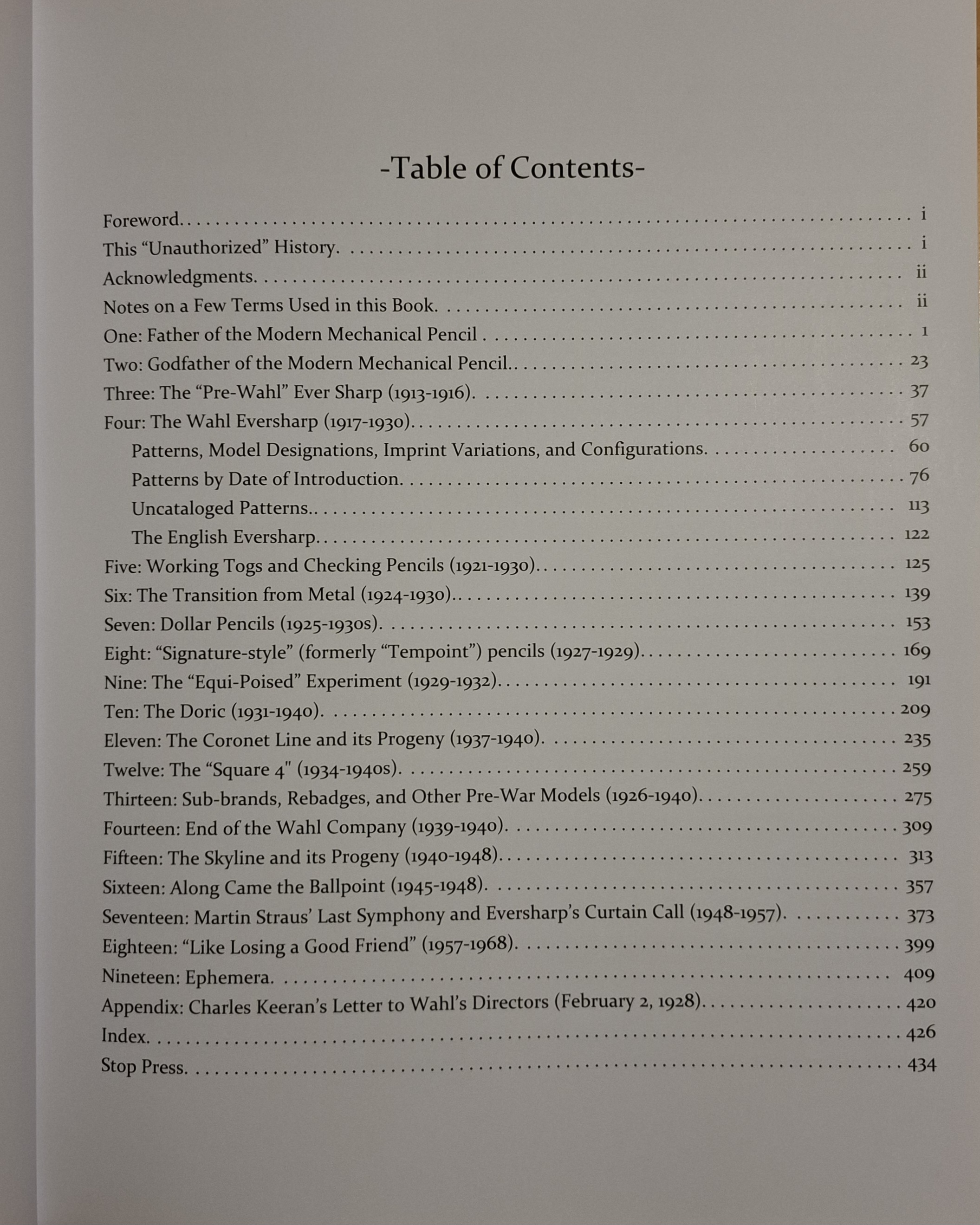 Il libro, uscito lo scorso anno, raccoglie tutte le approfondite quanto erudite ricerche condotte sulla produzione Wahl-Eversharp che l'autore aveva gratuitamente pubblicato negli ultimi 15 anni sul suo mitico/leggendario blog (https://leadheadpencils.blogspot.com/), da me più volte citato nelle recensioni; da diverso tempo, ahimè, molte pagine risultavano non più consultabili e questo poiché, anche comprensibilmente, l'autore stesso aveva deciso di monetizzare il suo straordinario (e costoso) lavoro...