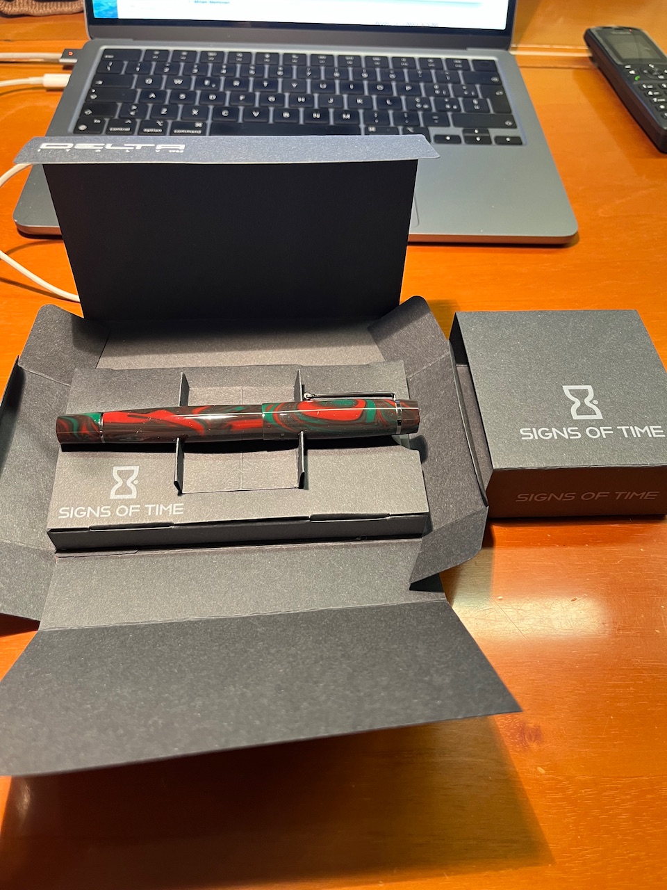 E molto gradevole vedere una stilografica italiana che non pecca di gigantismo. Brava Delta. Ora Delta dovrebbe fare un passettino in più e proporre questa stilografica anche nella fascia media/medio alta con un pennino in oro.