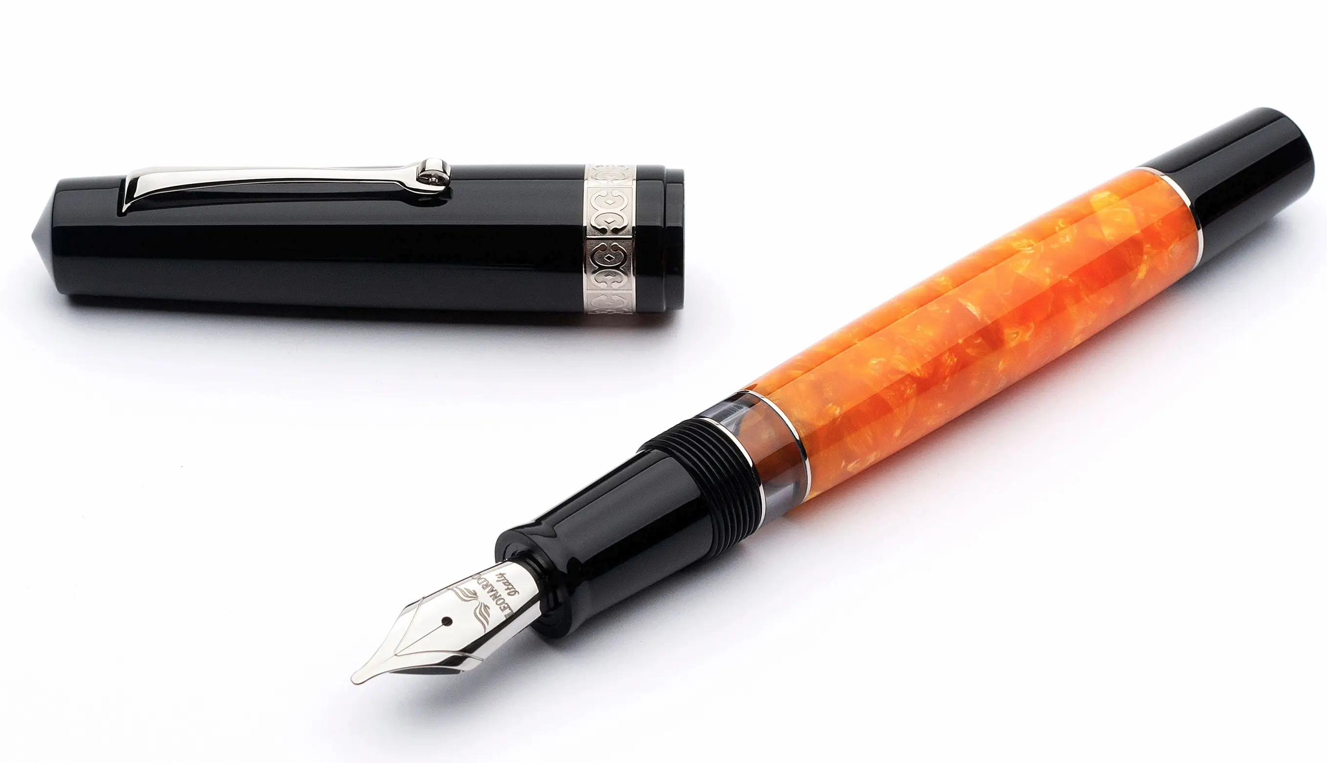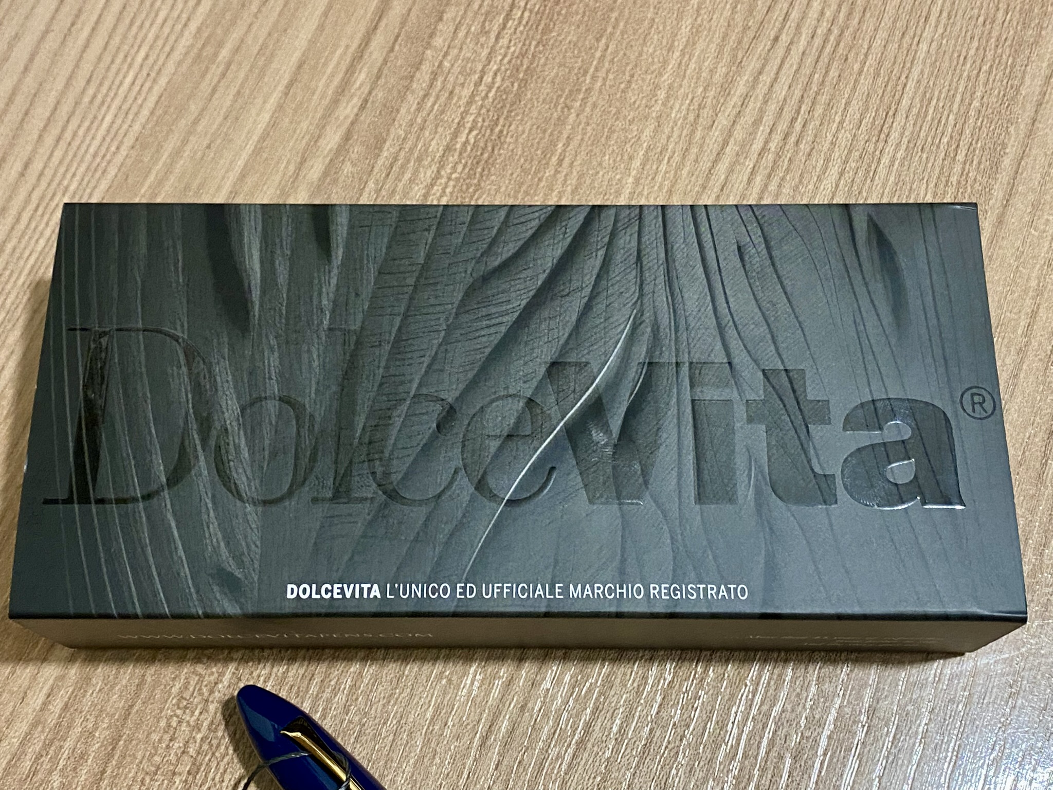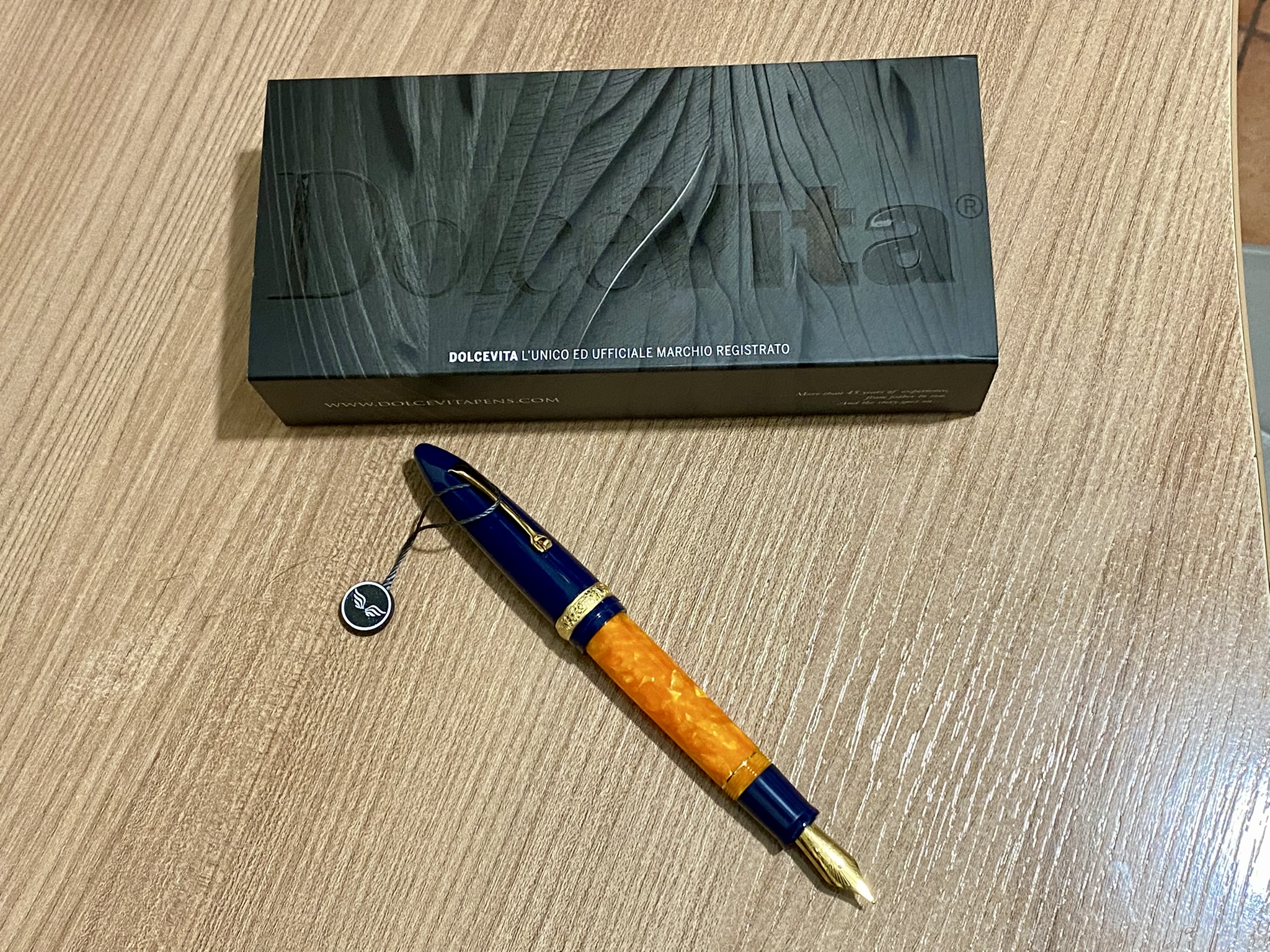 La Dolcevita è una penna vivace, i colori sono una festa, ma senza cadere in chiassosità. Il fusto arancione, che ha sempre contraddistinto la Dolcevita, si accoppia ad un cappuccio e sezione Blue Navy. Verrà prodotta in accoppiamento ad altri colori, sempre abbinati, di cappuccio e sezione, ma sono tutti colori vivi ed eleganti, colori da "Dolcevita"