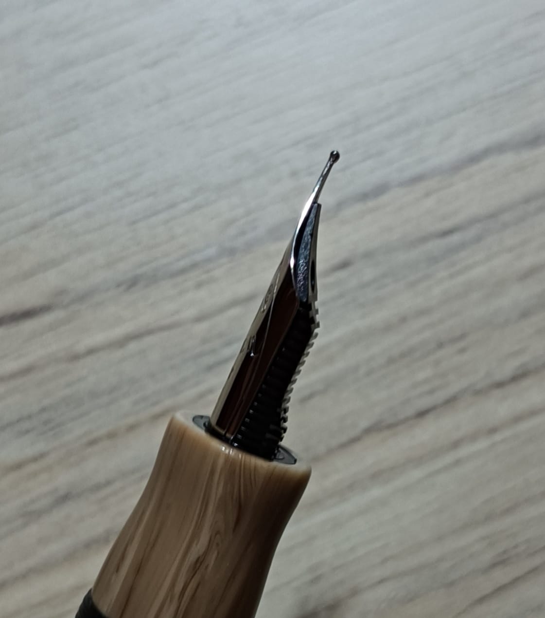 Giungiamo alle prestazioni di scrittura: si tratta di un pennino rigido appena molleggiato, il tratto è un F europeo dal flusso abbondante, quindi è decisamente più spesso di quello cui sono abituato, ma lo trovo molto piacevole nella scrittura, è un pennino che sa dare soddisfazioni. La buona sensazione di scrittura è aiutata dall'ergonomia della penna: sembra quasi progettata per la mia mano, la sezione è comodissima, la lunghezza è perfetta per la mia mano, il peso è quel tanto che basta ad assicurare un buon bilanciamento in fase di scrittura. Vi lascio come al solito una prova.