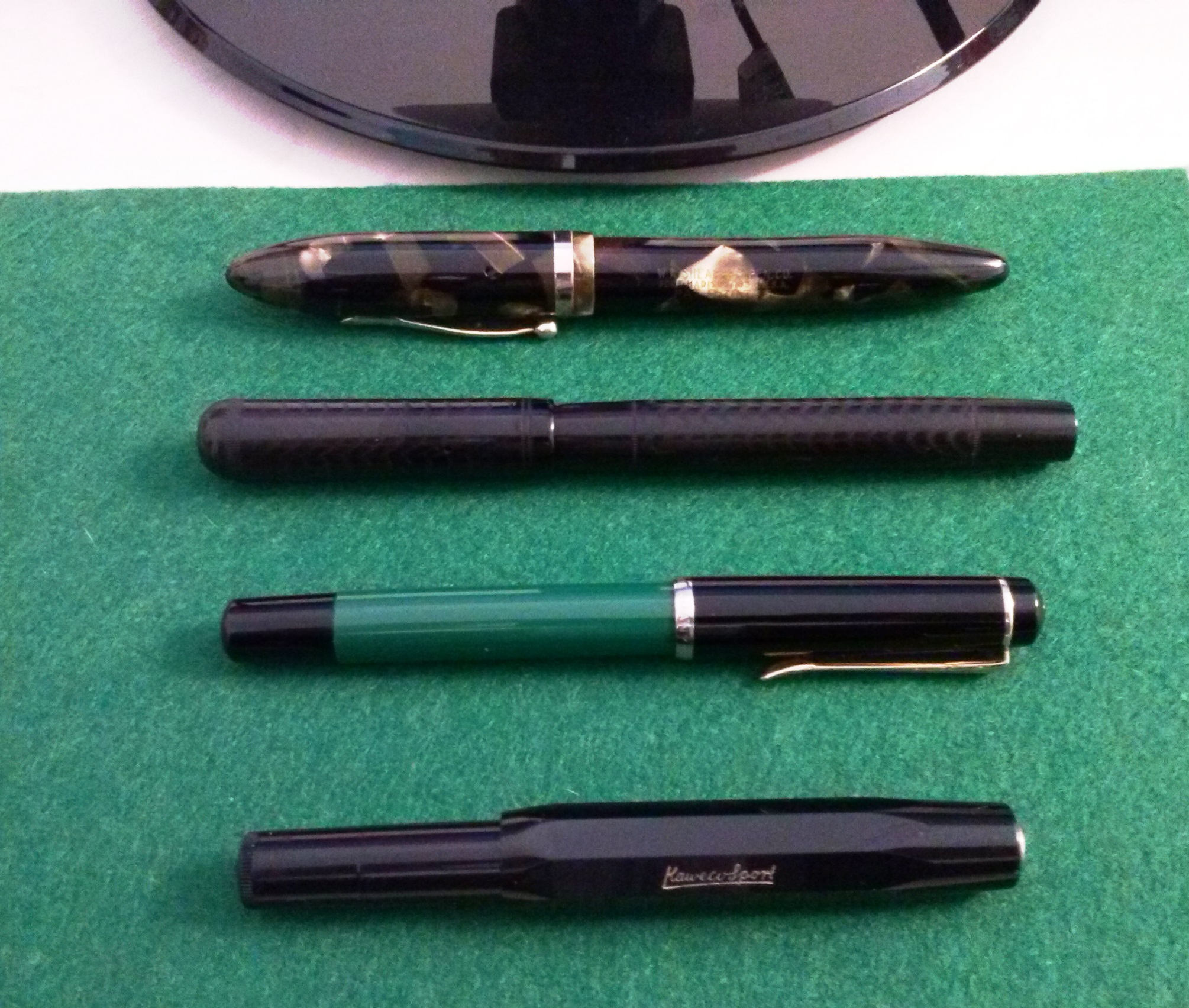 Le compagne di oggi: Sheaffer Balance marine green Premier Oversize 1931, Summit 1925, Pelikan 150 1980, Kaweco Sport Classic makrolon 2010.