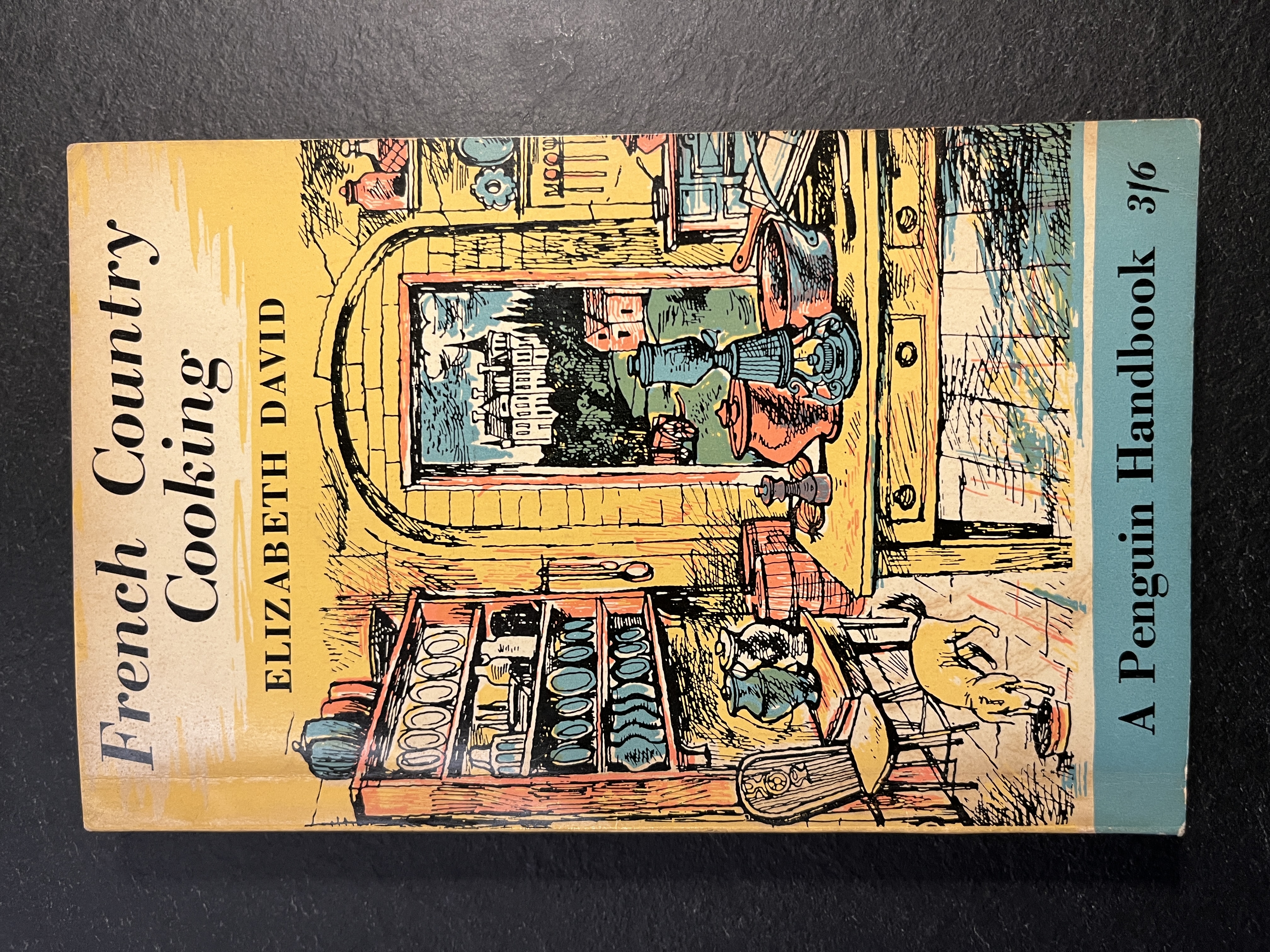 Libro di ricette francesi del 1951, scritto da una tipa Inglese abbastanza fuori di testa che aveva passato tutta la 2GM nel Mediterraneo e tornata nell'Inghilterra del razionamento e delle tessere aveva avuto uno shock.