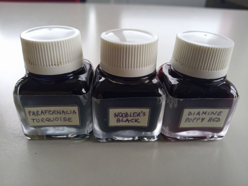 Nei miei trasferimenti intercontinentali ho fatto così il "trasloco" di molti inchiostri e ho portato fino a 8 boccette nella busta di plastica.