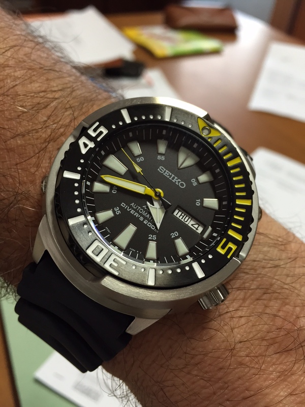 Un Diver con cassa in bronzo (una moda che sta "partendo" ora) Un Seiko "orange monster" E un "Ape Maia" (SRP639K1) Un altro ottimo Seiko, il "Samurai" (bello massiccio)