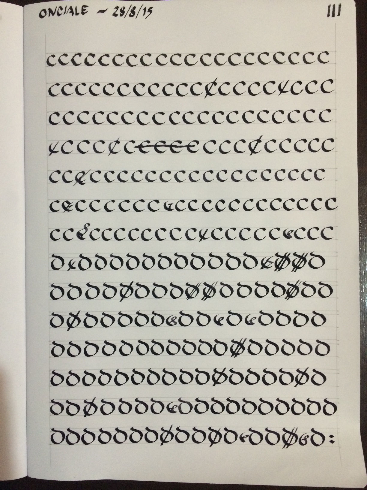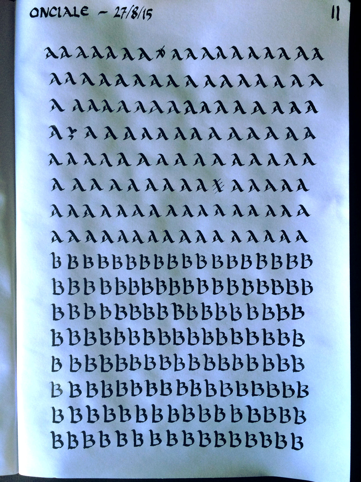 Ci ho messo un po' per trovare un minimo di equilibrio nelle curve, soprattutto per non far venire storte le 'g'. Sono sicuramente tra le lettere su cui dovrò tornare su.