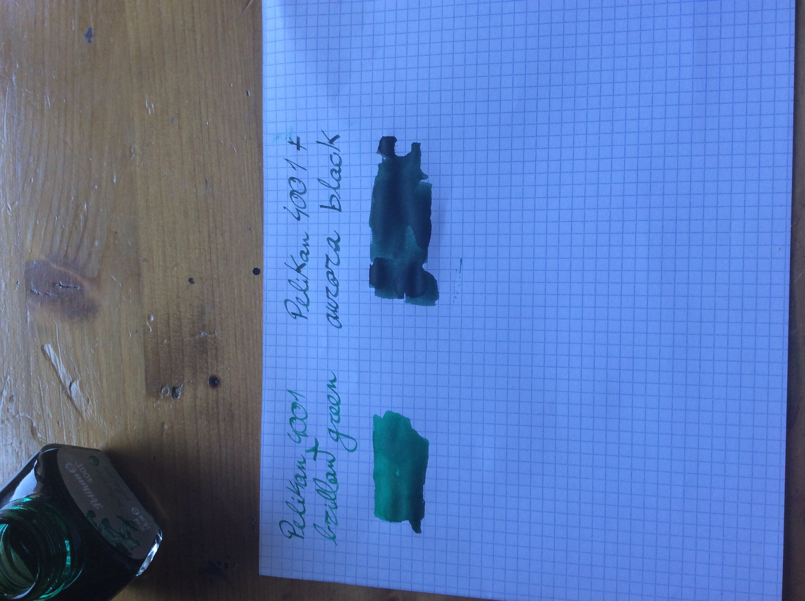I due verdi da me usati sono entrambi il pelikan 4001 brillant green, ma uno ha l'aggiunta di un pó di aurora black.