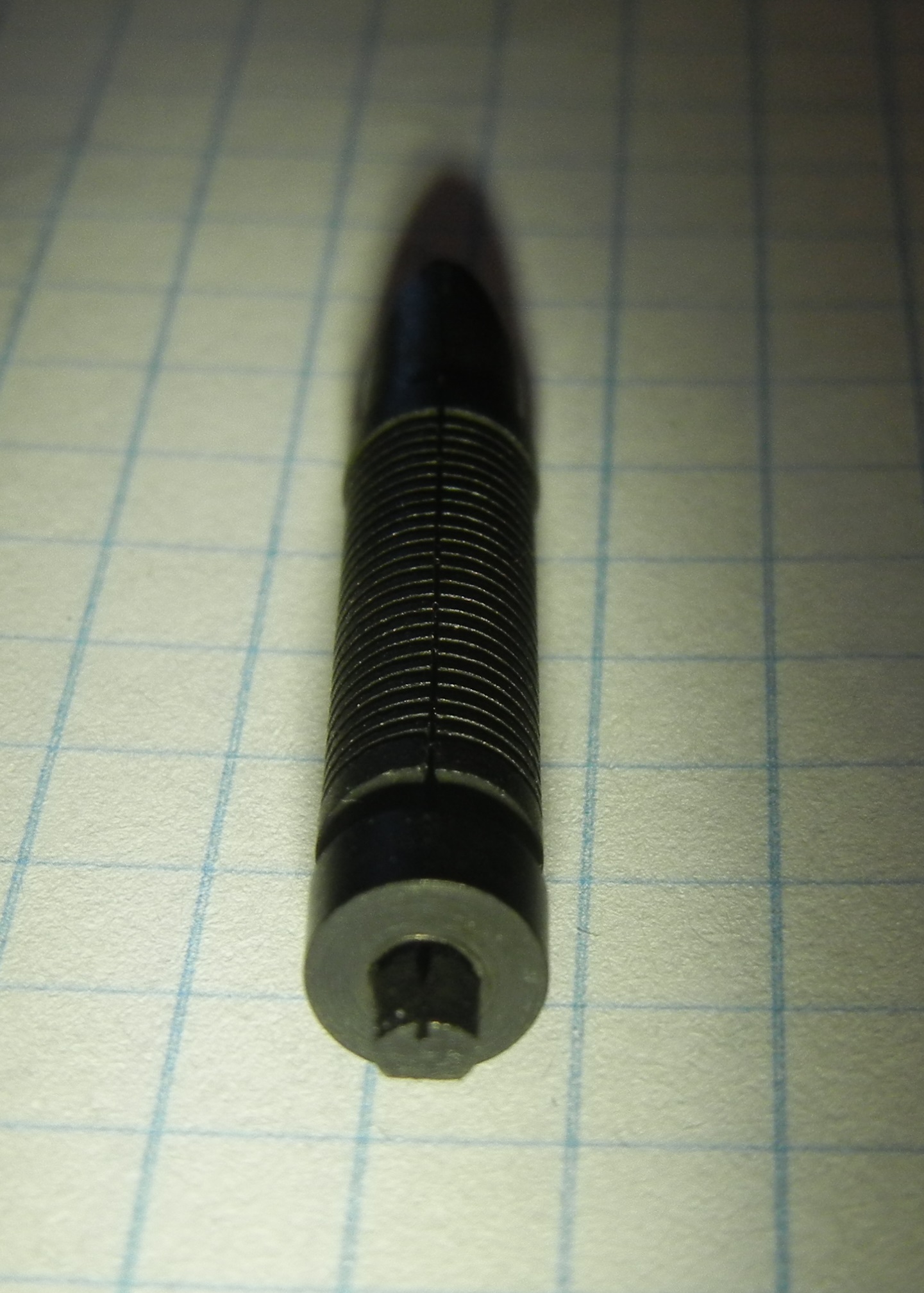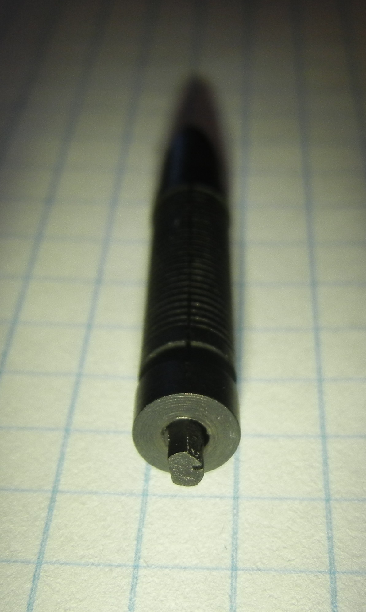 Credo ci sia un foro o canale interno che interagisce con quello sul pernetto e secondo la posizione porta più o meno inchiostro.