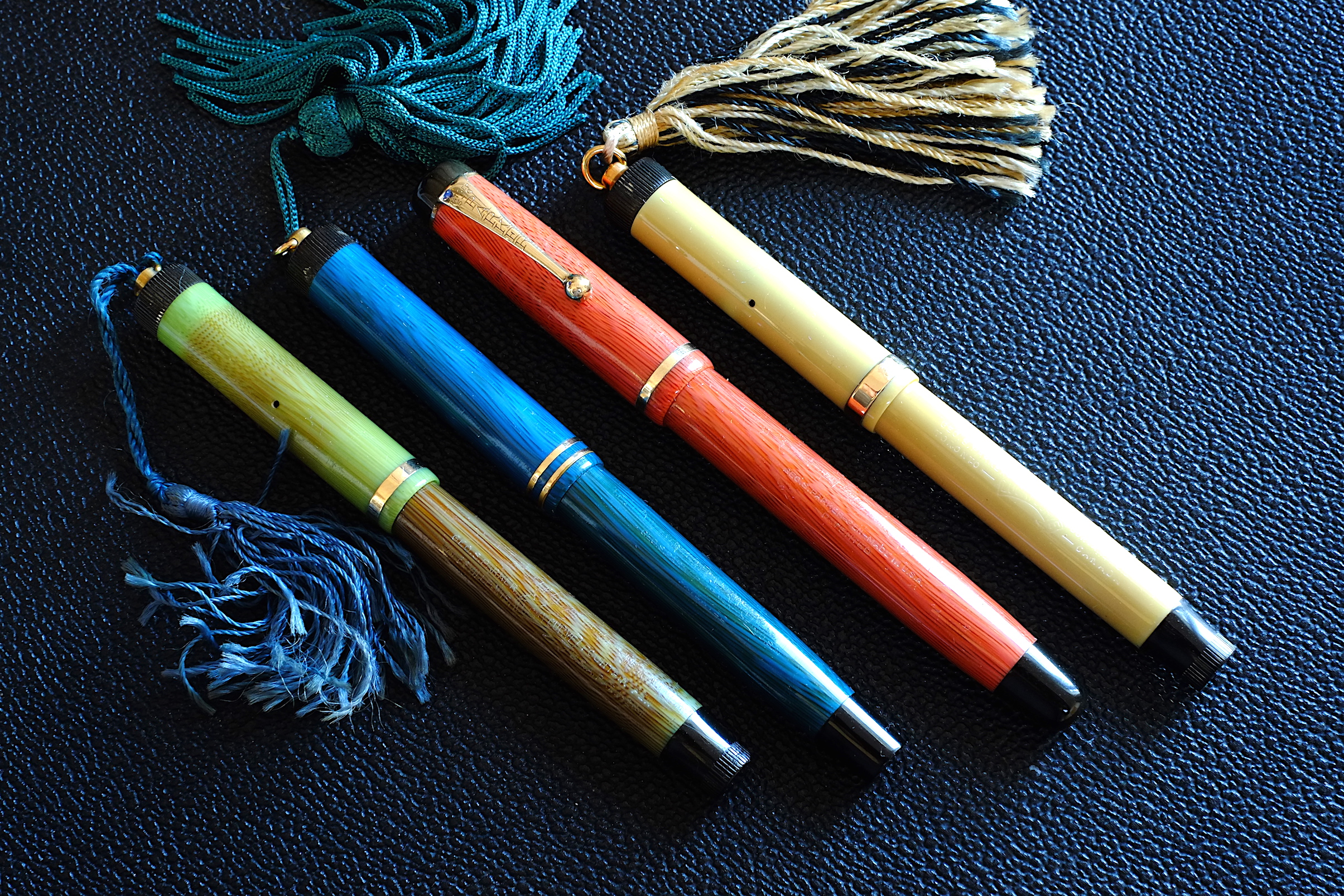 PeppePipes ha scritto:Contribuisco con le mie tre Pasrel: una Gray beige della prima serie "non moire" e con unico anello largo al cappuccio (1926), una Apple green, purtroppo piuttosto virata; questo colore che sostituì il proprio il Gray beige nel 1928. Infine una Naples blue nella versione streamlined introdotta nel 1929, che differisce per il fondello e la parte terminale del corpo più rastremati e per il puntale senza "scalino".