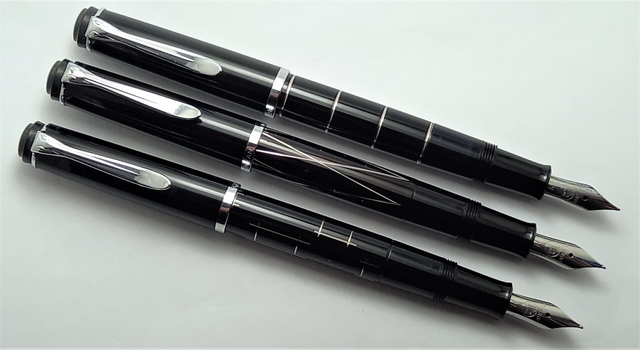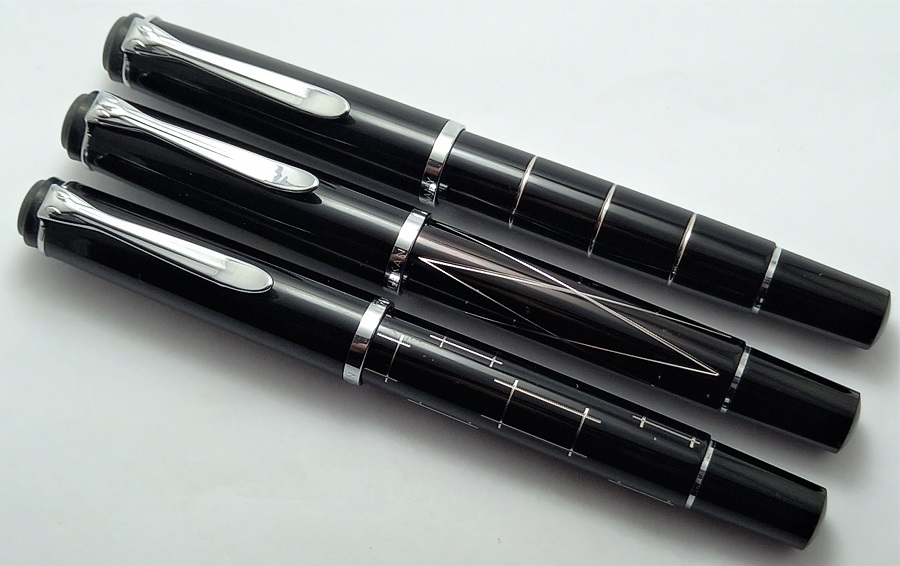Possediamo solo le tre penne stilografiche M215 nere con i diversi disegni. Inoltre, abbiamo una Penna a Sfera e un blocco per scrivere.