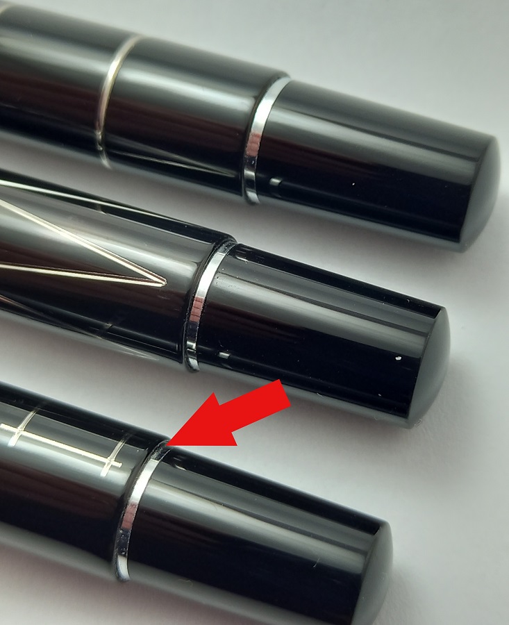L'anellino sul fondo della penna va a toccare il fusto. Non ci dovrebbero essere scalini a pistone completamente avvitati.