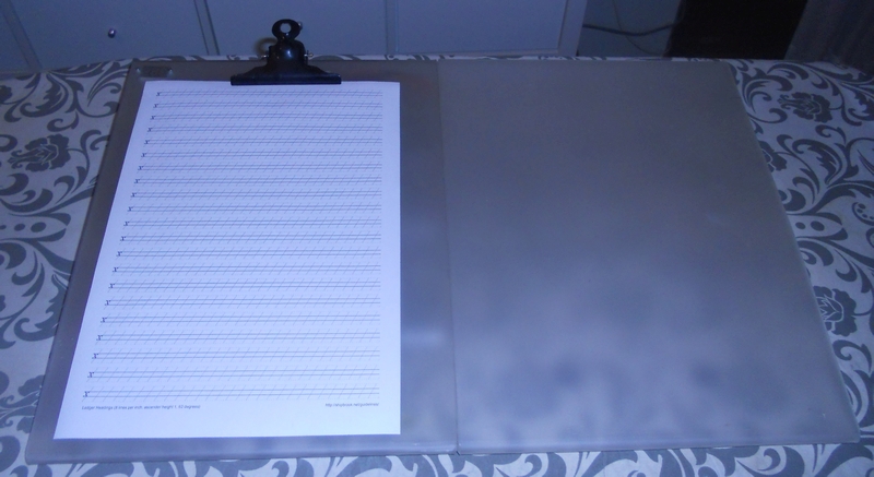 Il disegno non rispecchia la giusta posizione, almeno per me: il leggio/foglio andrebbe tenuto inclinato (vedi il disegno della nostra Daniela):