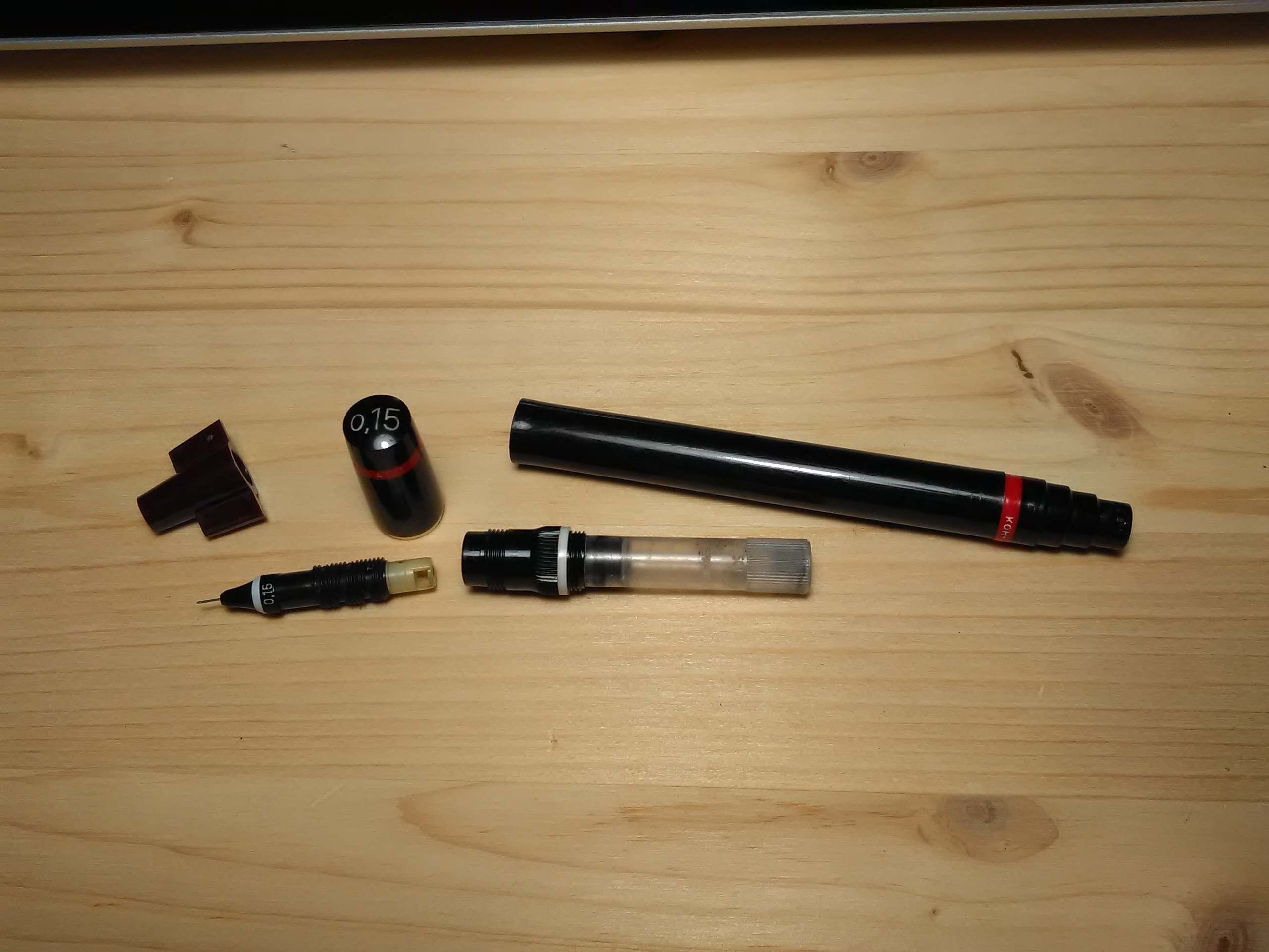 Quando la china si seccava diventava come il carbone e le "croste" venivano via solo con lo specifico diluente. L'alternativa ero lo smontaggio del pennino con la rimozione meccanica dei residui. Particolare attenzione dovevi metterla nel montaggio perché era un attimo piegare il filo metallico soprattutto nei diametri 0,1 - 0,15 e 0,2. Se si piegava dovevi raddrizzarlo perfettamente altrimenti non scorreva nel tubicino. Che tempi quelli del binomio china - lucido, poi la lametta e il "radex", non li rimpiango ma non li dimentico.