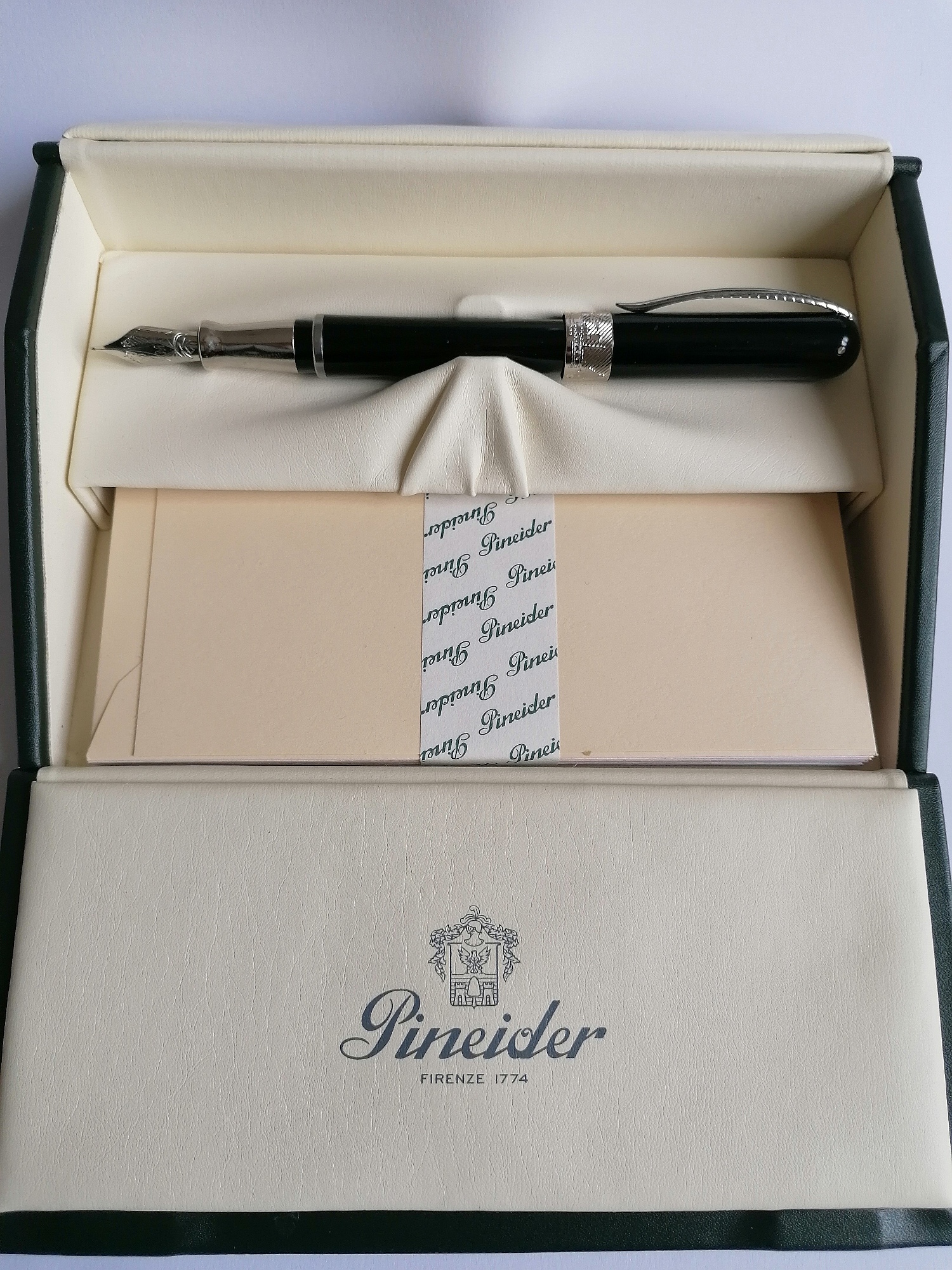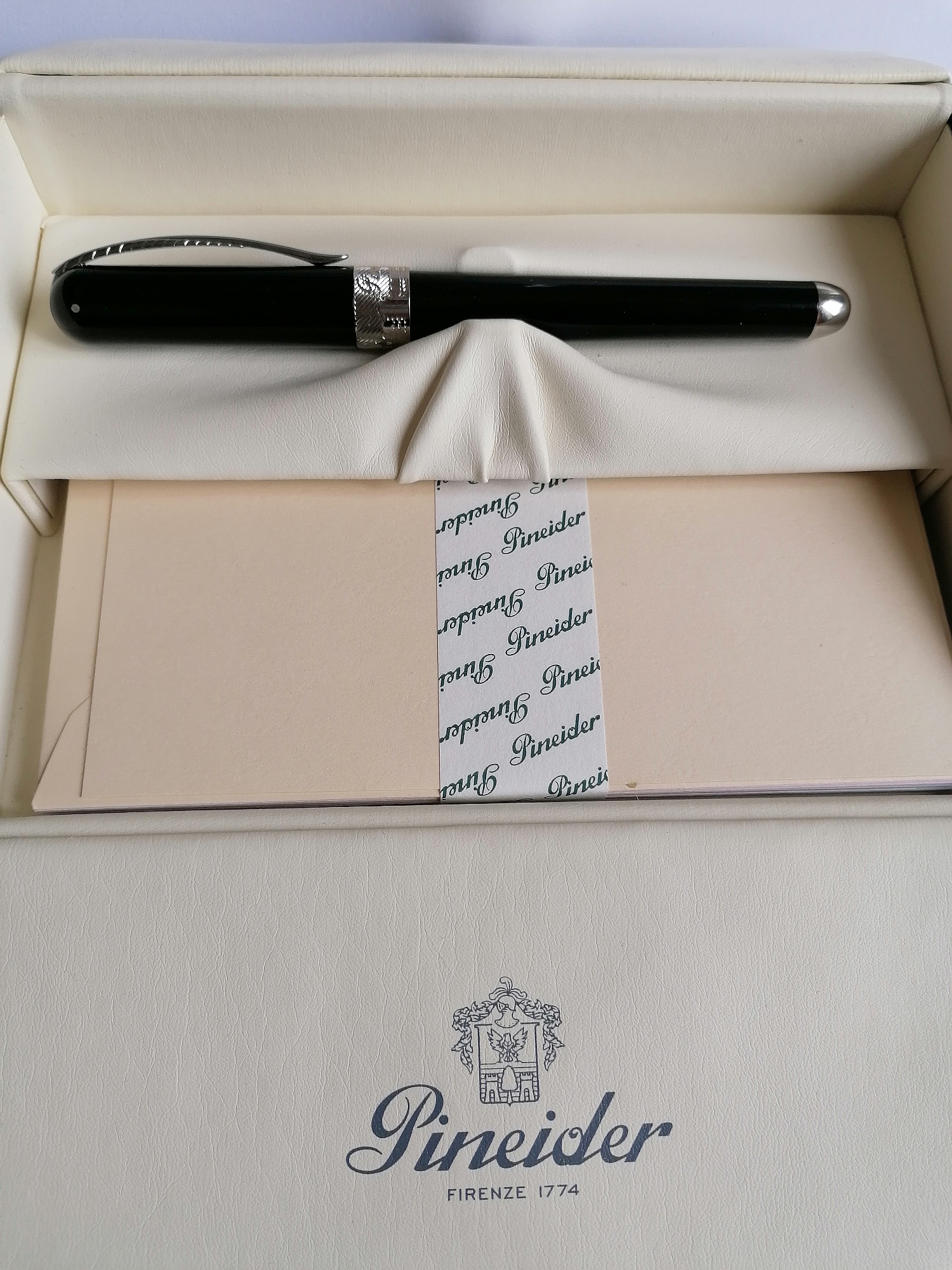 Il che fa passare in secondo piano il fatto che la suddetta Pineider è nera (preferisco colorate, ma non lo dico in giro), ha la sezione in metallo (non mi piace, ma lo dico qui e non fuori nel mondo, quindi....), ma è un regalo fatto pensando a me, quindi chissene ????