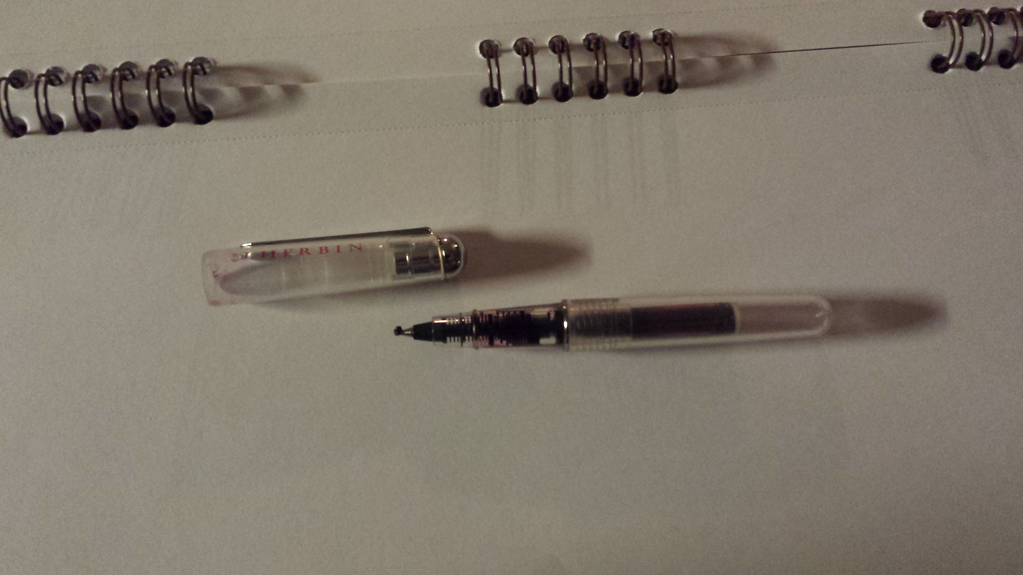 Non so se avete presente il tipo di penna. L'ho presa per provare un roller caricato ad inchiostro stilografico... beh, col Pelikan 4001 Royal Blu nessun problema, con questo rosso della Diamine mi ha fatto questo simpatico "funghetto"