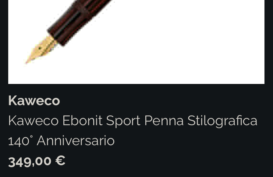 Ciao Rita, vorrei veramente capire come la Kaweco sia giunta a questa quotazione...edis ha scritto: ↑venerdì 18 agosto 2023, 18:45 Pubblico questo post perché ho bisogno di condividere il mio stupore per il prezzo di questa Kaweco Sport: