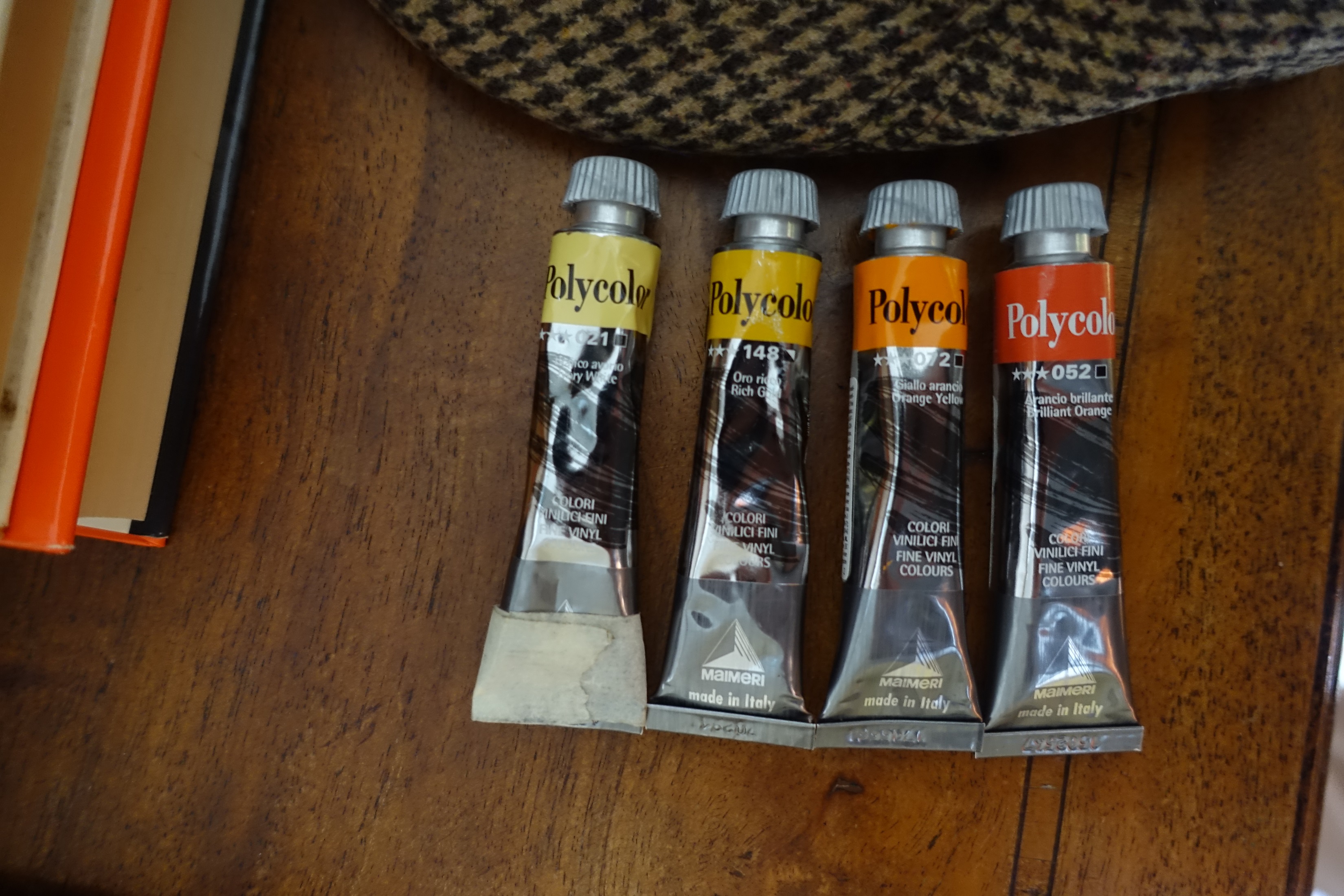 Non volevo fare nessun intervento, poi con la smania del perfezionismo (una pessima malattia), ho cercato un colore il più simile ai resti rimasti nei solchi, in fine ho optato per un giallo arancio. ;)