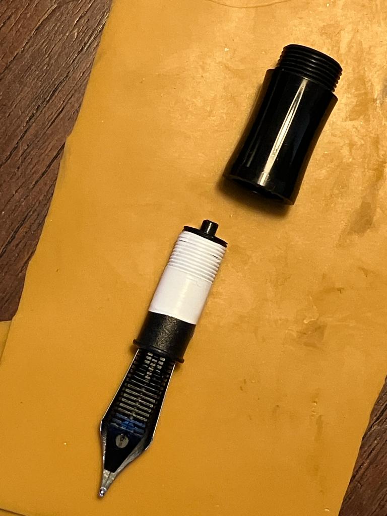 Dopo averlo montato, la penna non gocciola "quasi" più. Ho a questo punto aggiunto un o-ring sul collare in modo che faccia tenuta in corrispondenza della bocca della sezione, ed uno sulla filettatura tra sezione e fusto. C'è già un o-ring all'interno della imboccatura del fusto. Quando la penna era tornata dalla assistenza mi sono accorto che mi avevano montato un secondo o-ring sopra l'altro...