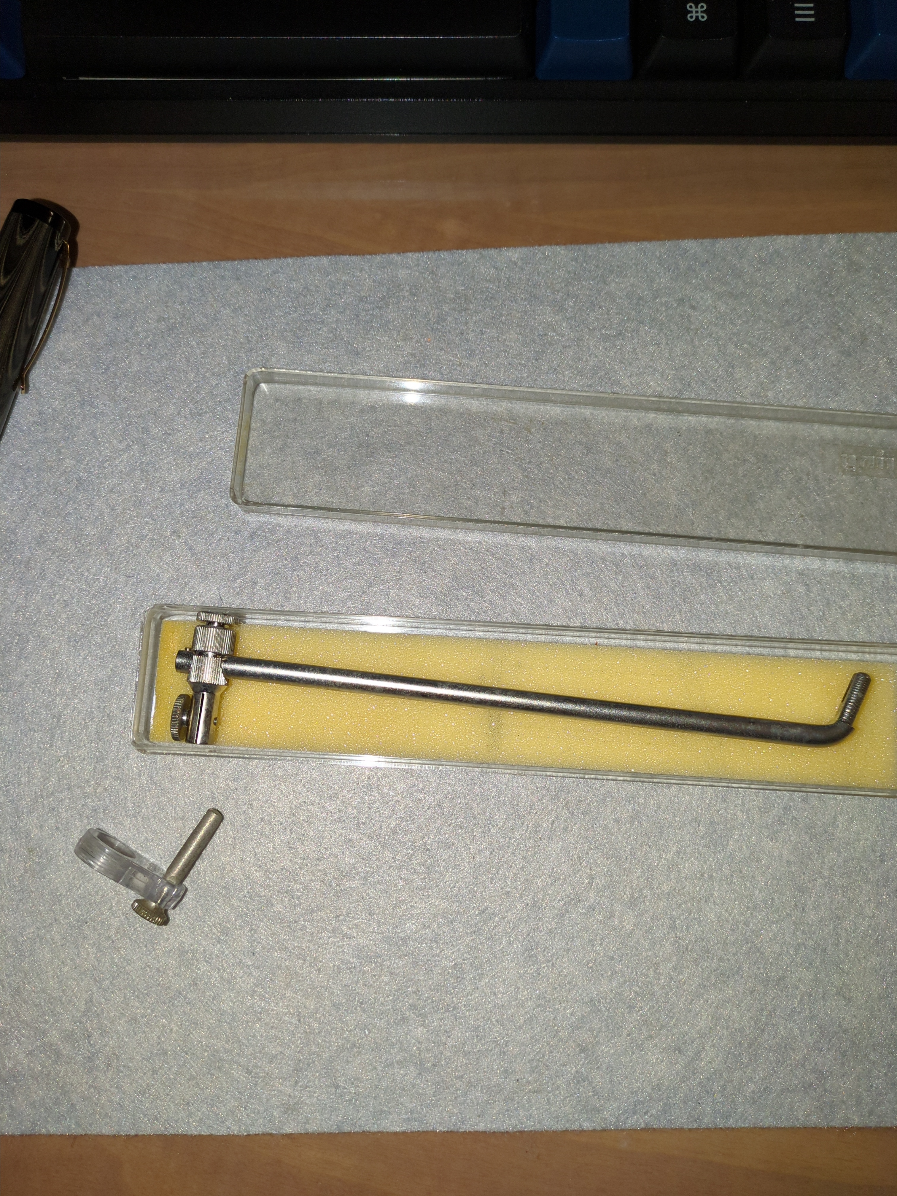 Per altro... ora ricordo che esisteva pure la "prolunga", una specie di asta che si montatava da un lato sul compasso e su cui si montava in posizione libera il raccordo: serviva per poter tracciare circonferenze di raggio più ampio dell'apertura del compasso.