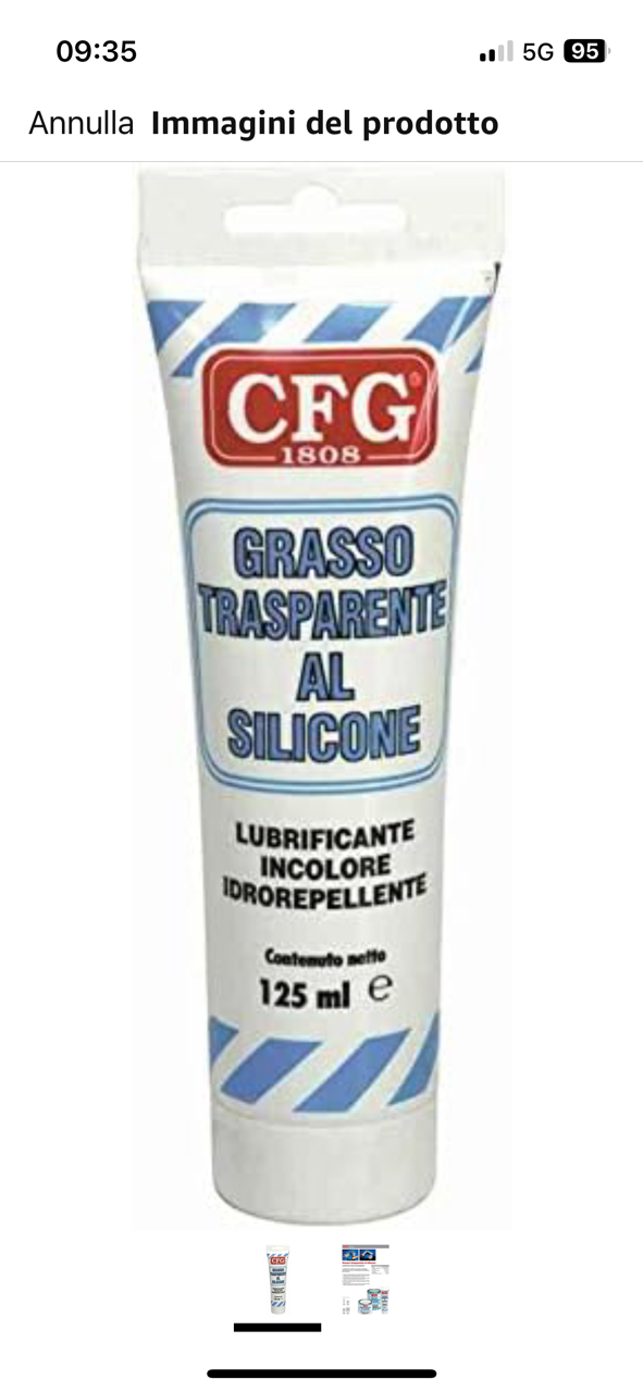 Non sono poi così difficili da trovare, tutti i grassi per uso subaqueo sono puri (con le valvole da sub non si scherza), quindi ad esempio il Mares suddetto (che tra l'altro è 20 ml, quindi neanche un tubetto enorme poi da conservare) va benissimo, ma anche altre marche per quell'uso, tipo il Pro-dive mostrato.