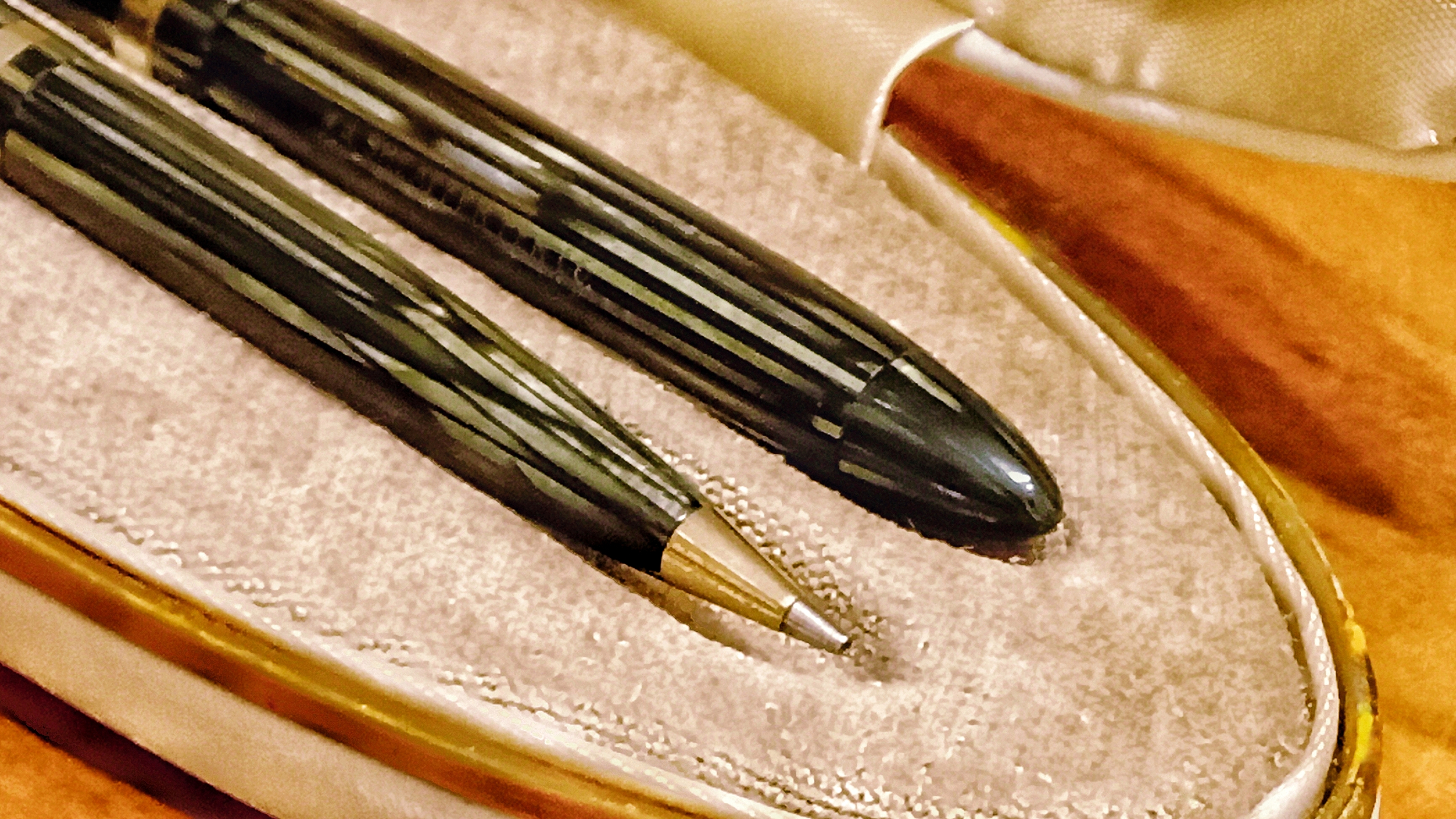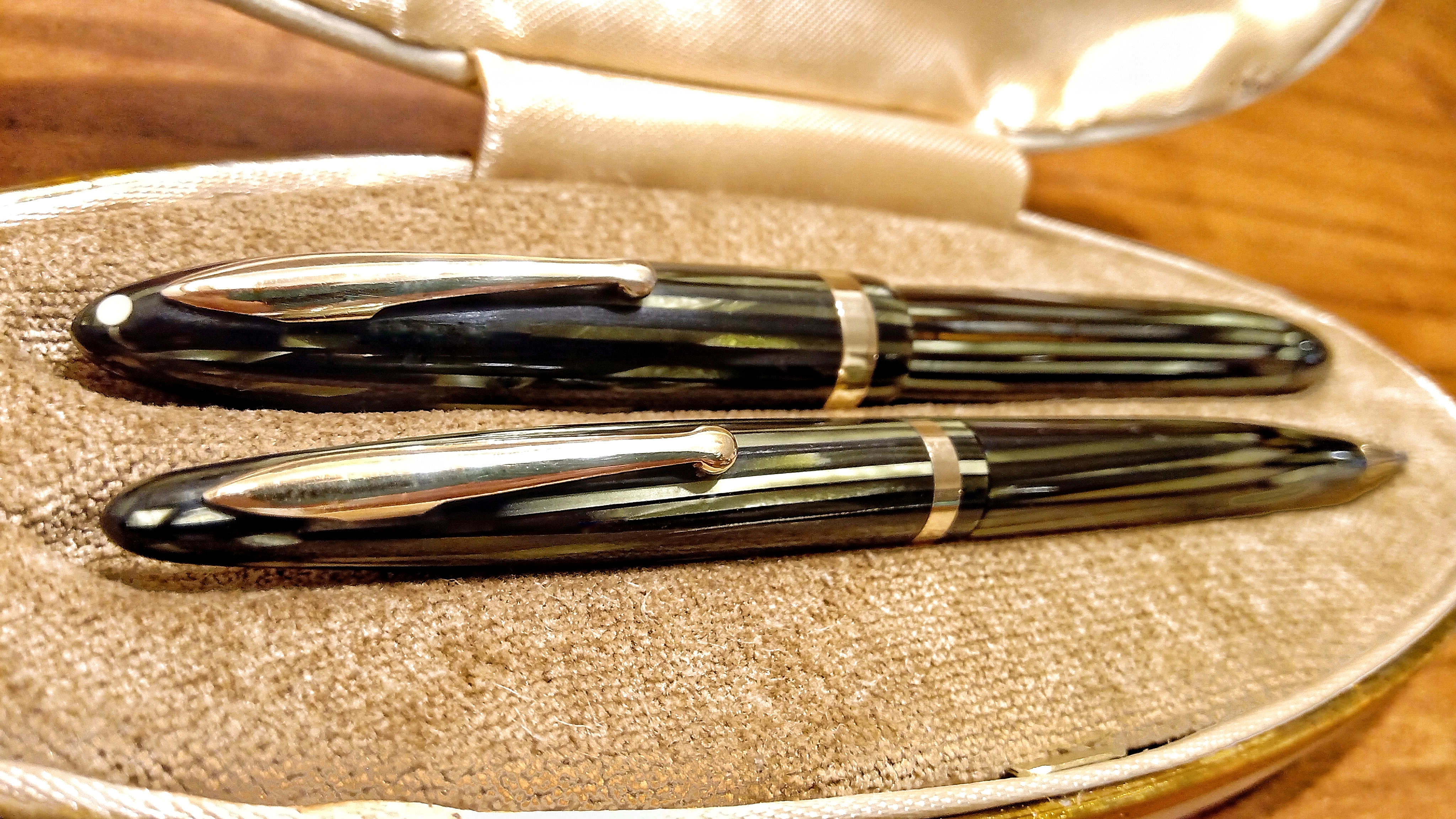 Ho letto con grande piacere il dettagliatissimo e ottimamente documentato resoconto di questo, tanto complesso quanto splendido, restauro del bellissimo ensamble Lady Sheaffer che ci hai generosamente offerto. Sono sicuro che sarà utilissimo a molti.