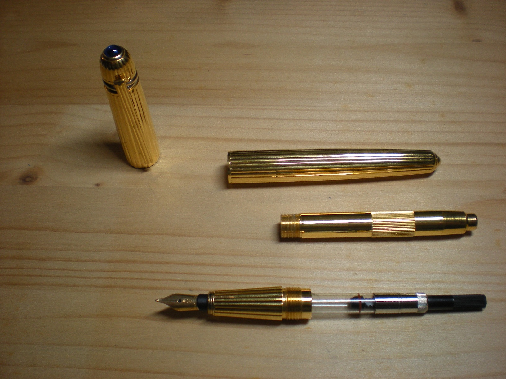 qui è in coppia con il roller. Non la uso perchè non rientra nei miei gusti ma mi ricordo che il pennino è valido, è piuttosto pesante e l'avevo allegerita un po' togliendo la canna interna. Il convertitore non è originale, l'attacco è quello standard.