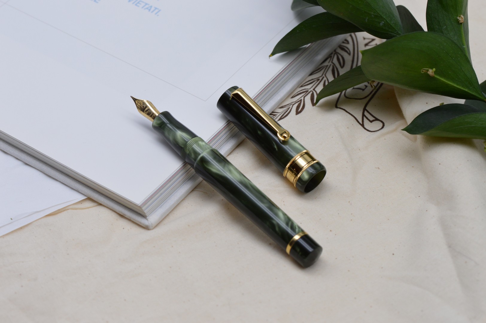 La mia è la Capri, un bellissimo verde con sfumature madreperlate, più bella dal vivo che in foto. Io la trovo bellissima ed anche se è molto grossa non mi dà fastidio impugnarla e scriverci; anche il pennino (né flex, né superflex, ma rigido che poi rigido non è) è davvero godurioso: morbido, cedevole alla pressione e lievemente flessibile, ma proprio poco, a me i flessibili non piacciono, ma molto molleggiato. Ha un difetto però: mi dà salti di tratto e false partenze. La penna l'ho caricata senza lavarla, poi l'ho scaricata, l'ho ricaricata, le ho lavato il pennino sotto l'acqua (senza averlo smontato, perché se posso evito) ora va un po' meglio, ma qualche salto lo fa. Premesso che non ho voglia di rispedire la penna indietro, anzi ho più voglia di comprarne un'altra, dite che con un po' di rodaggio i salti di tratto potranno non esserci più?