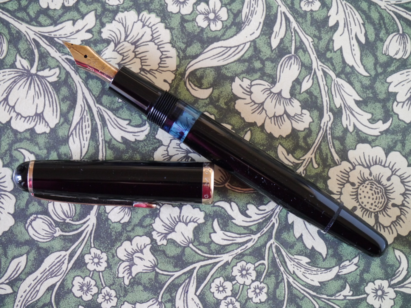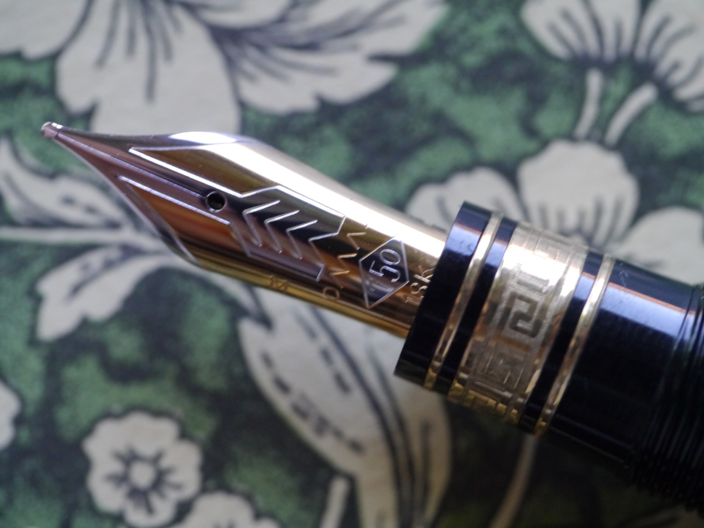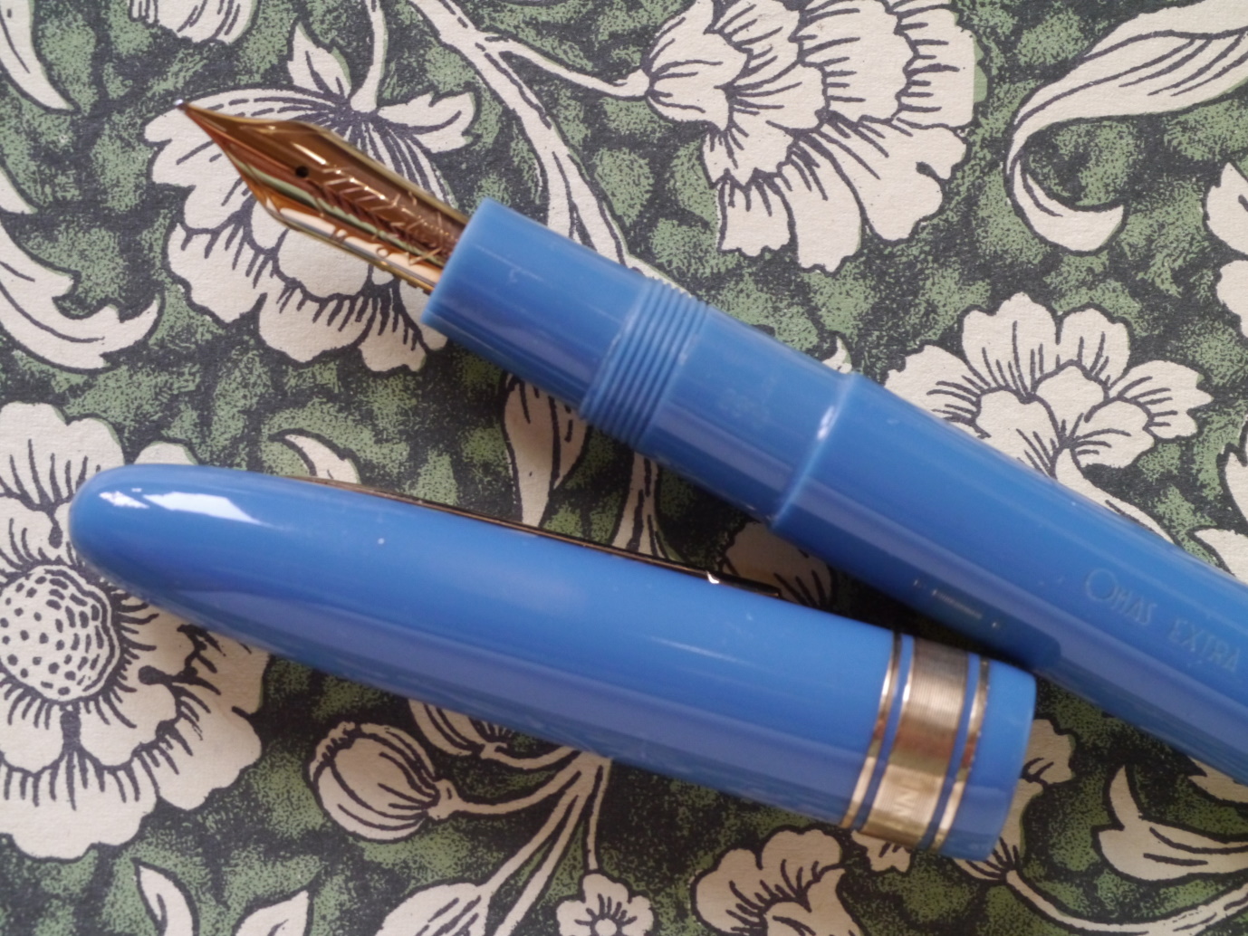 Non mi sorprenderebbe comunque, Omas tendava a fare queste varianti "non ufficiali" ogni tanto, ne ho viste altre così più scure. Il pennino in oro 18k è un normale two-tone Omas (i 14k sono oro giallo, i 18k sono two-tone, non è un Extralucens, l'Extralucens ha tale dicitura incisa). I two-tone in genere sono più moderni dei 14k, di solito anche un po' più rigidi. La produzione del pennino è ancora Omas, o piccola (o comunque "per Omas" ma precedente alla produzione Bock, i pennini fatti per Omas da Bock mi risulta siano marcati con la O maiuscola).