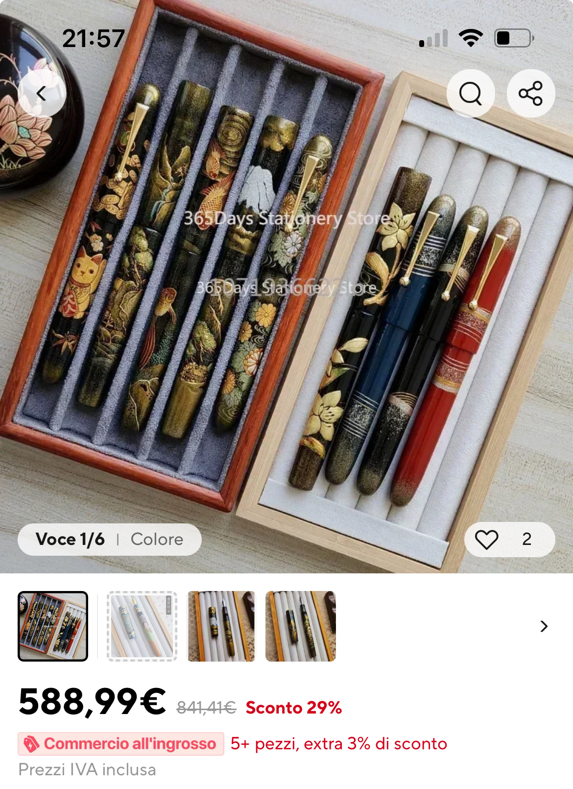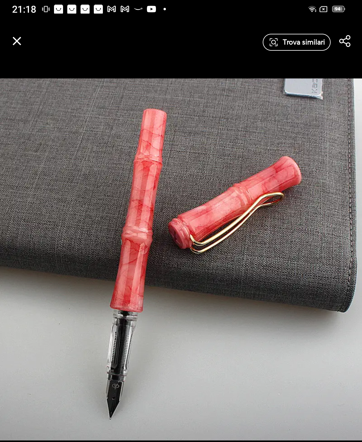 La traduzione dell'inserzione dice "in bambù" e nella parte delle caratteristiche è scritto "wood" come materiale della penna.