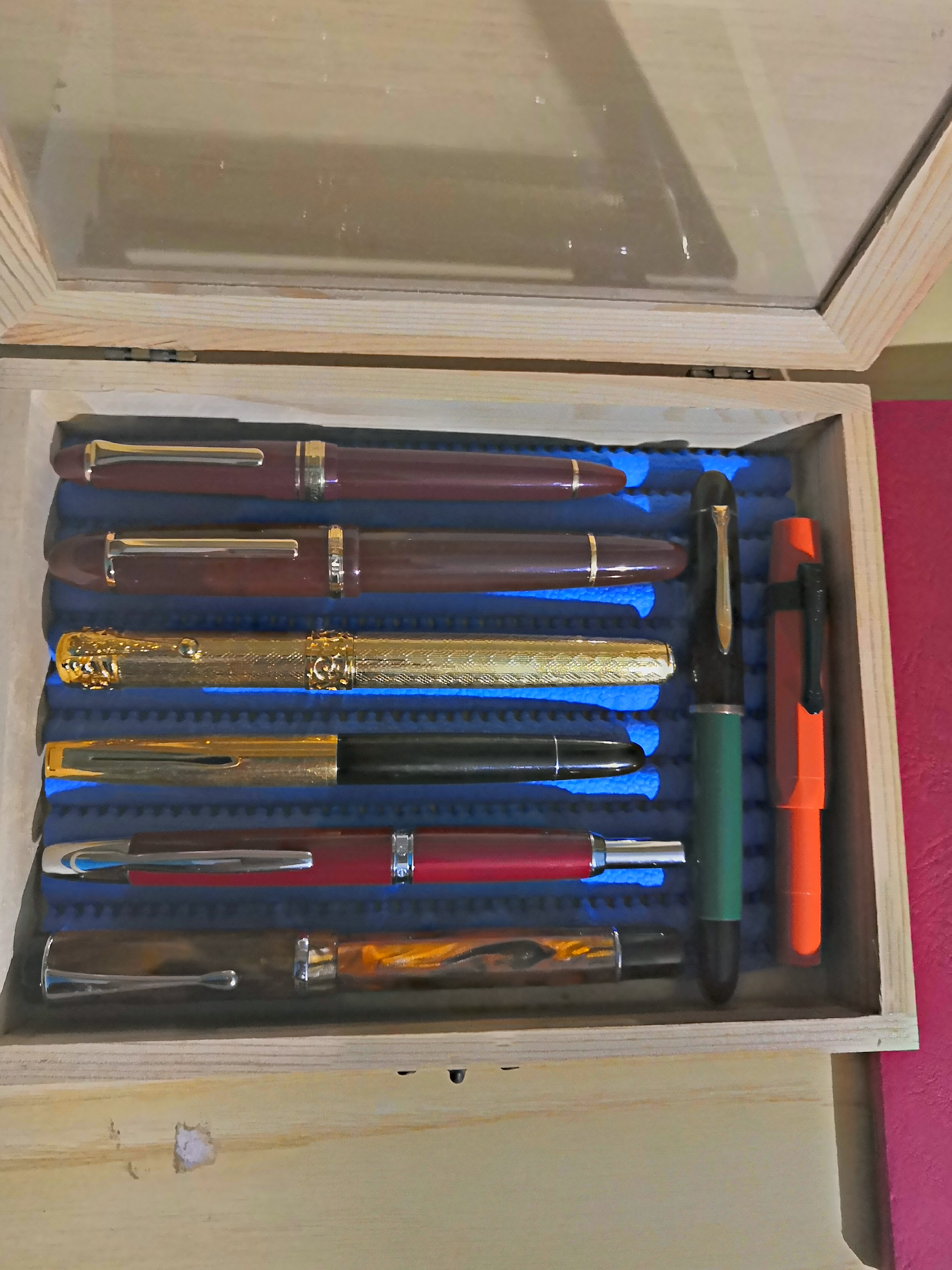 La mia scatola delle penne cariche vede al momento, dall'alto: