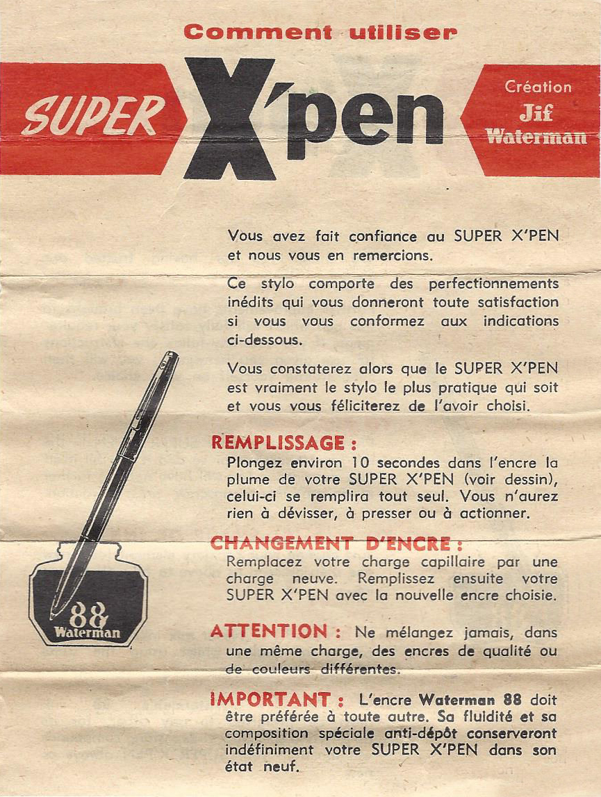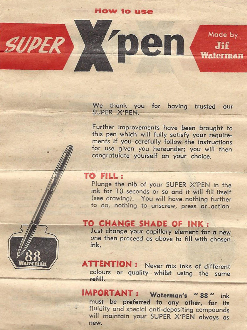 Non sapevo che anche la Waterman avesse il modello 88, la Super X'pen, riempimento capillare, basta tenerla 10 sec. nel calamaio :o :mrgreen: