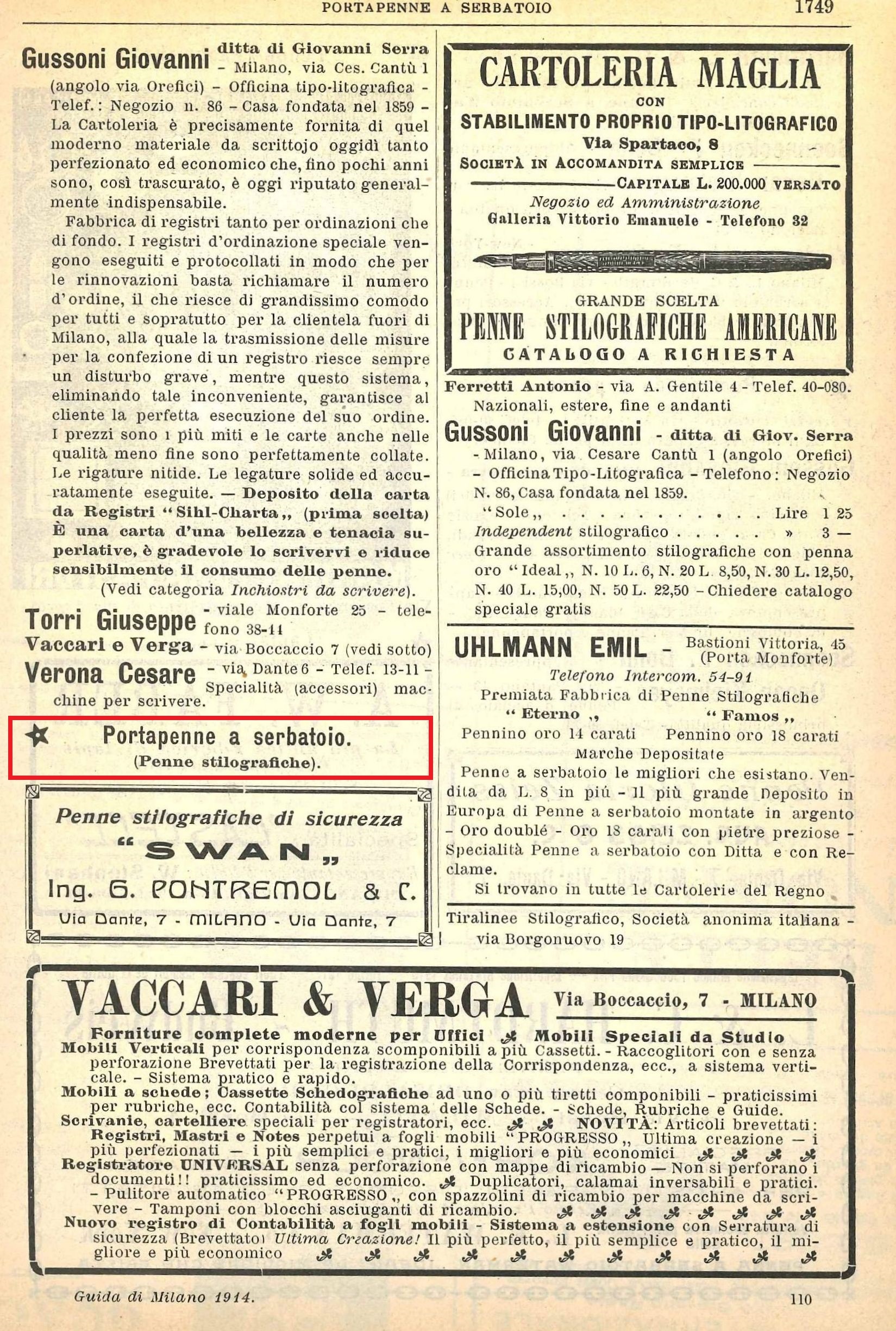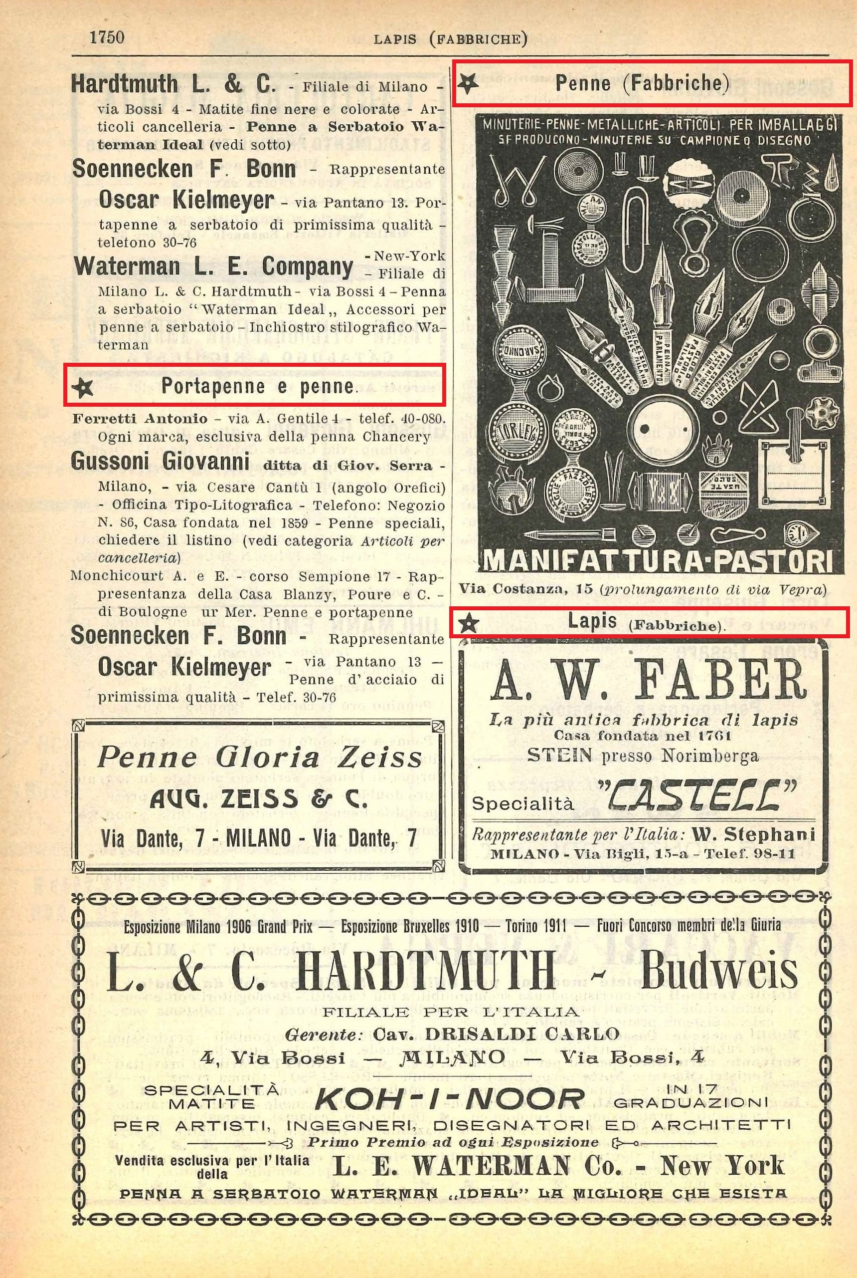 Musicus ha scritto: A pag.1749 e 1750, le inserzioni dei produttori e dei rivenditori di Penne Stilografiche: i soliti noti Swan, Uhlmann, Waterman, Soennecken.