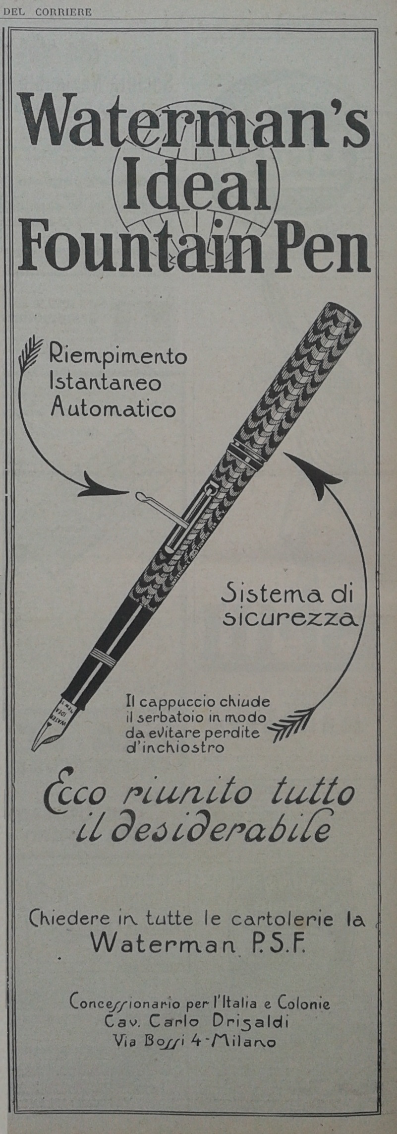WATERMAN - PSF pocket self filler - 1919-12-07. La Domenica del Corriere - Anno XXI, N.49, pag.10.