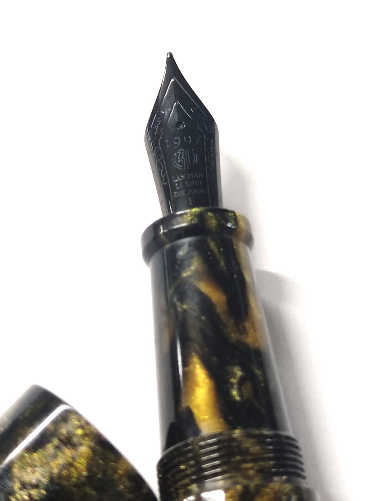 La Fuliwen 017, nero-oro, con installato un nuovo pennino Hong-dian nero. Il suo proprio non mi piaceva.